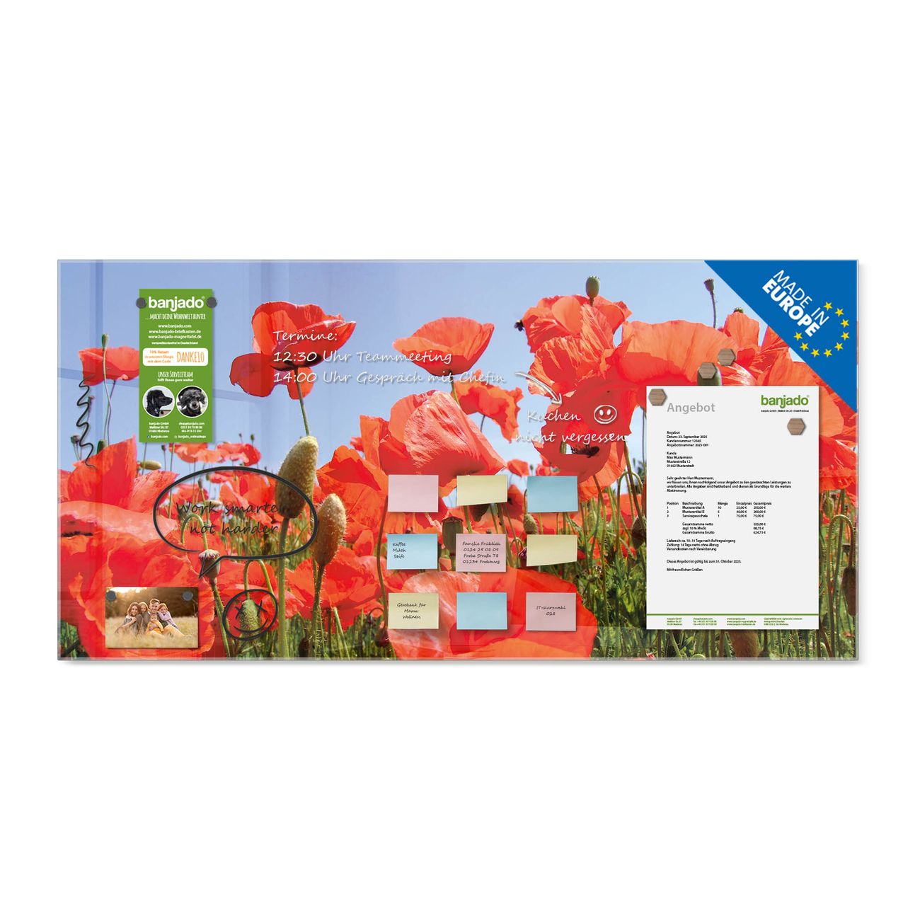 Glas Magnettafel im Querformat Motiv Mohnblumen