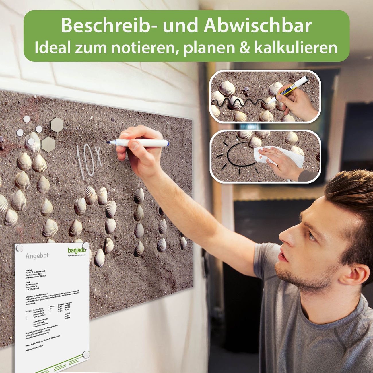 Bitte beachten Sie, dass ausschliessliche spezielle Magnete an der Glastafel haften. Wir empfehlen banjado Neodym Magnete, diese sind durch uns auf Wirksamkeit geprüft.