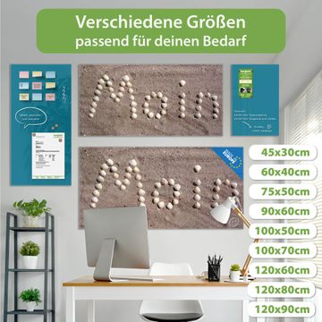 Material: 4mm Sicherheitsglas mit Metallrückwand Eigenschaften: beschreibbar, magnetisch, kratzfest Maße: 120x60x0,6cm, 10,80kg schwer Motiv Nummer 10285 Moin Moin Zubehör: inklusive 4 Neodym-Magnete