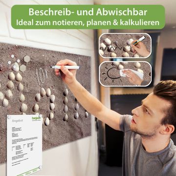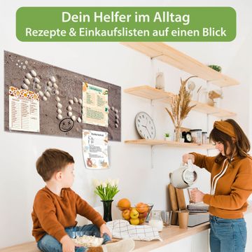 Auf der glatten Glasoberfläche lassen sich Termine, Rezepte oder Notizen ganz einfach mit Kreidestiften festhalten und rückstandslos entfernen. Starke Neodym-Magnete halten Ihre wichtigsten Erinnerungen sicher an Ort und Stelle. So entsteht Ihre ganz persönliche Ideenwand - jeden Tag neu.