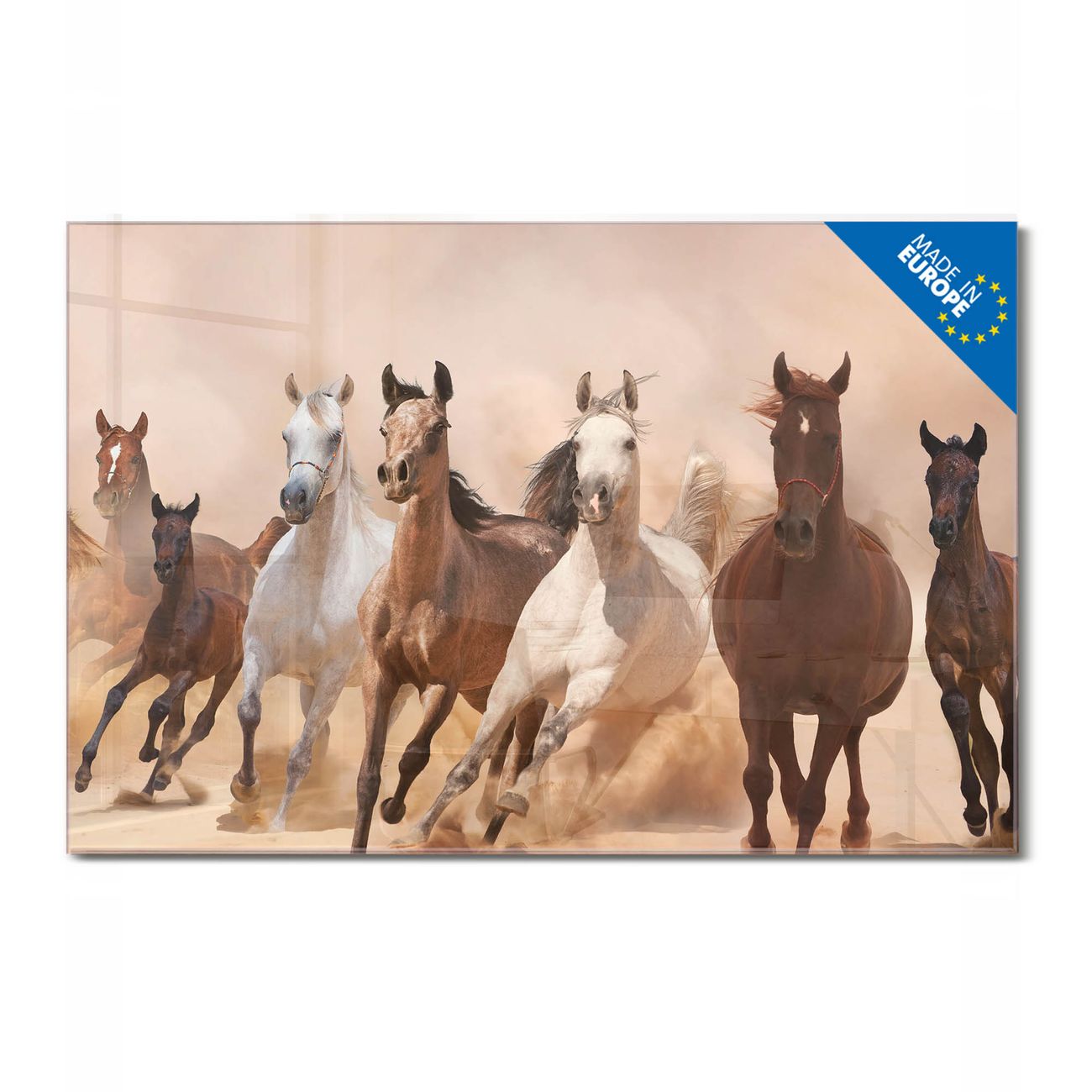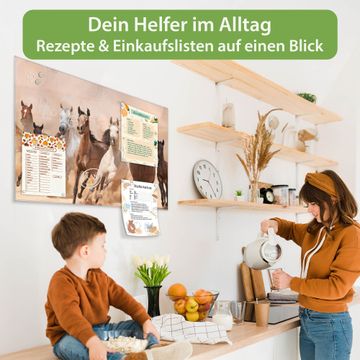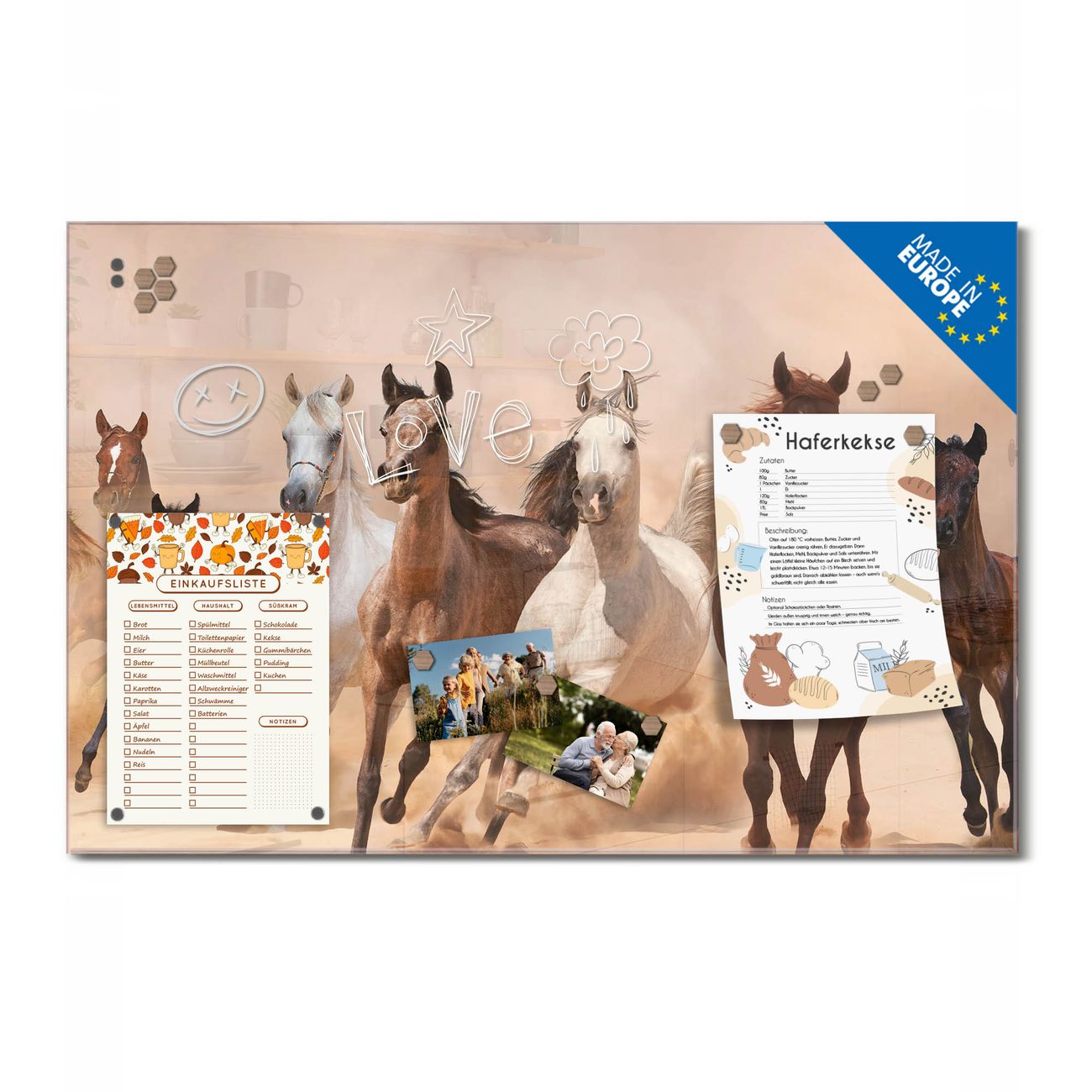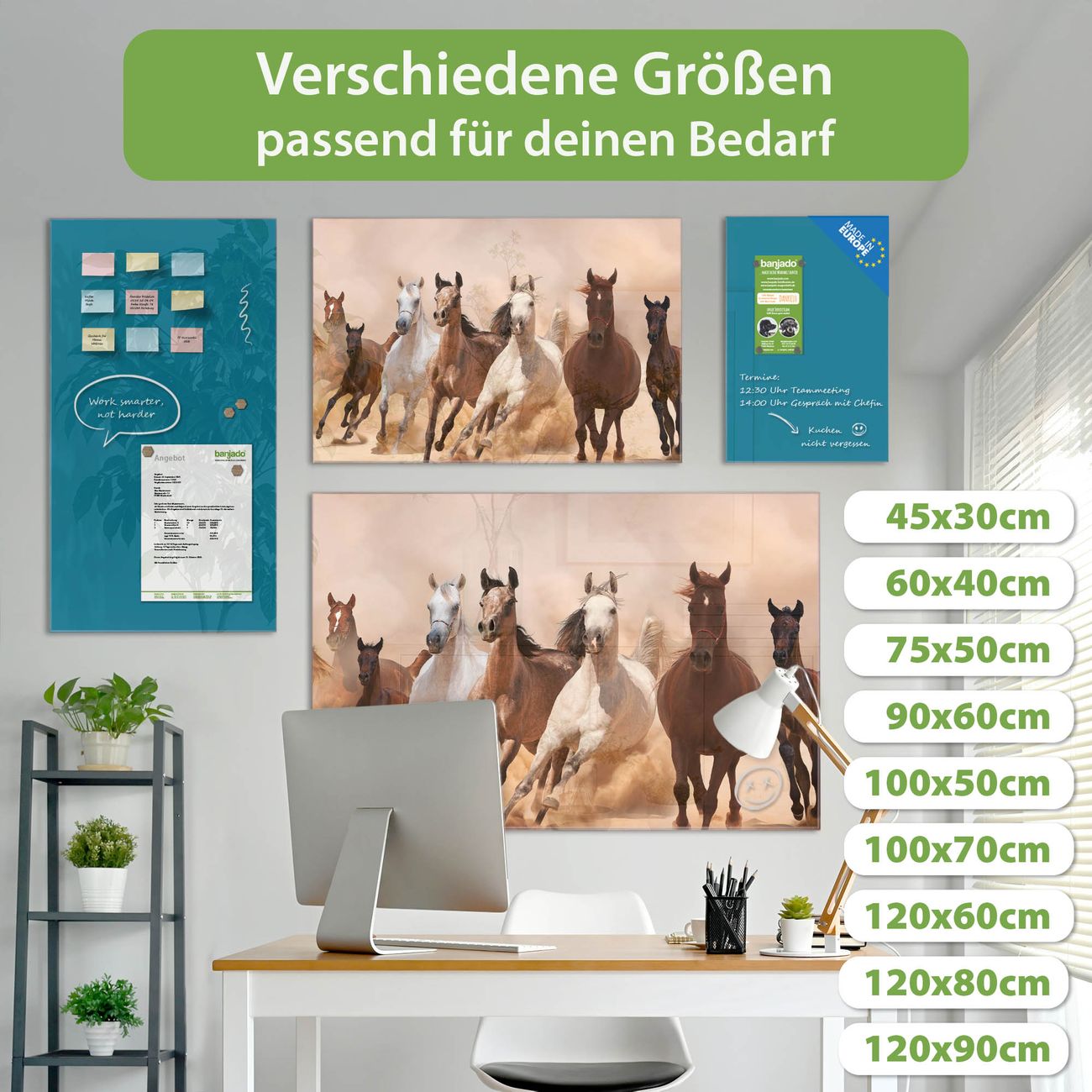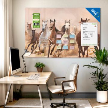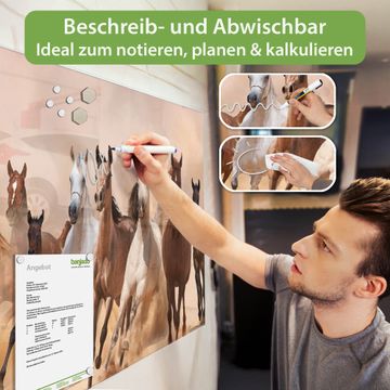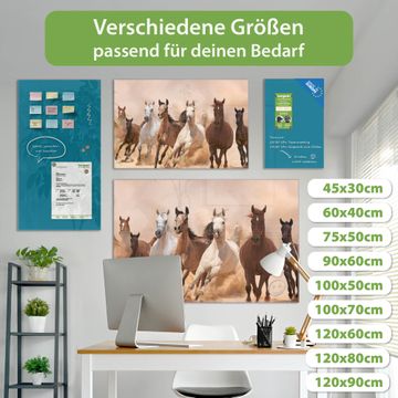 Material: 4mm Sicherheitsglas mit Metallrückwand Eigenschaften: beschreibbar, magnetisch, kratzfest Maße: 45x30x0,6cm, 2,03kg schwer Motiv Nummer 11128 Mongolische Stimmung Zubehör: inklusive 4 Neodym-Magnete