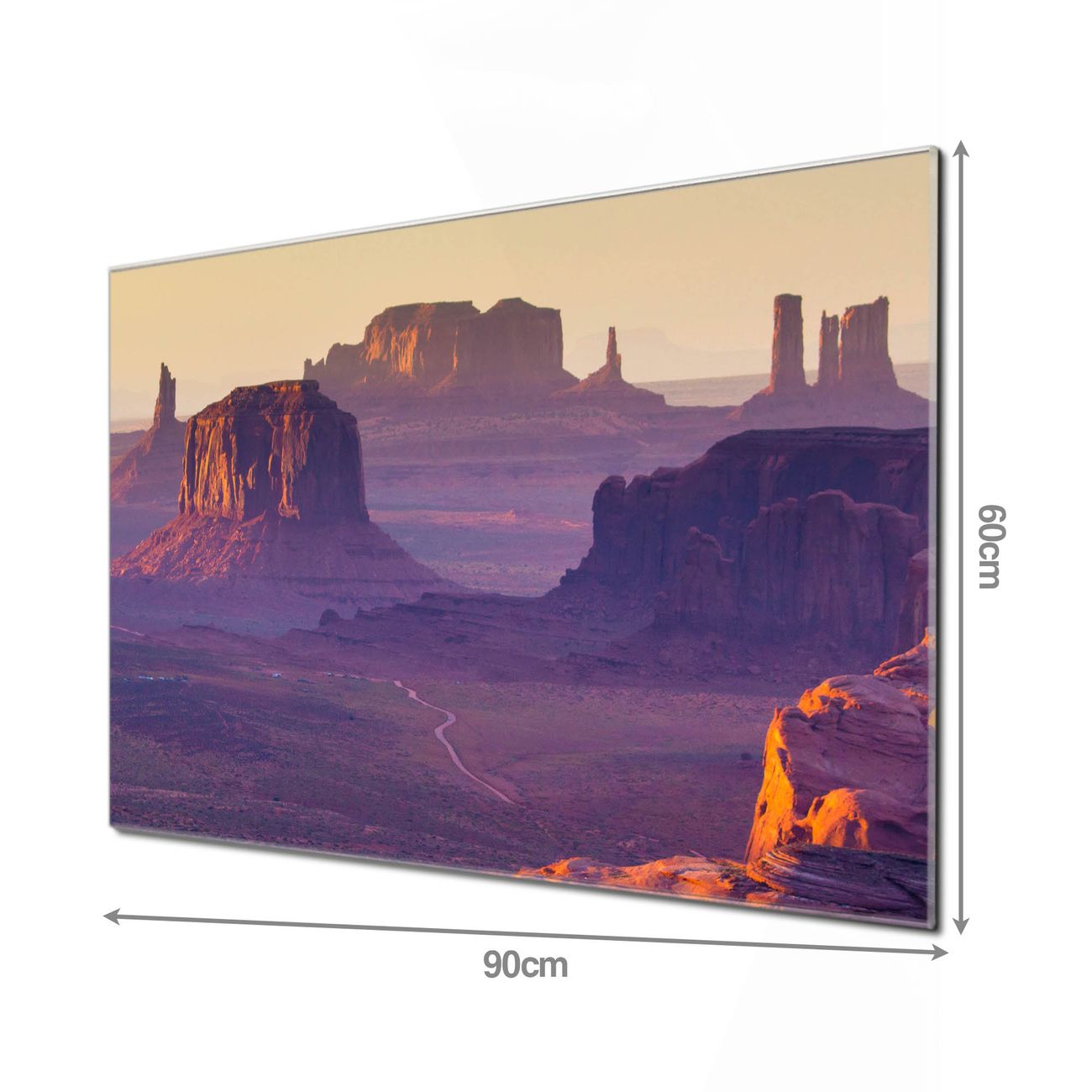 Material: 4mm Sicherheitsglas mit Metallrückwand Eigenschaften: beschreibbar, magnetisch, kratzfest Maße: 90x60x0,6cm, 8,10kg schwer Motiv Nummer 11477 Monument Valley Zubehör: inklusive 4 Neodym-Magnete