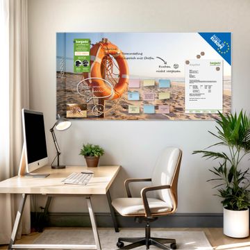 Die banjado Glas Magnettafel mit dem Motiv Motiv Morgens Am Strand verbindet Funktionalität mit Stil. Sie ersetzt das Zettelchaos durch klare Strukturen und bringt dabei eine warme, natürliche Atmosphäre in Ihr Zuhause. Ob im Büro, in der Küche oder im Eingangsbereich - dieses Design-Board zieht Blicke an und sorgt für Ordnung mit Charakter.