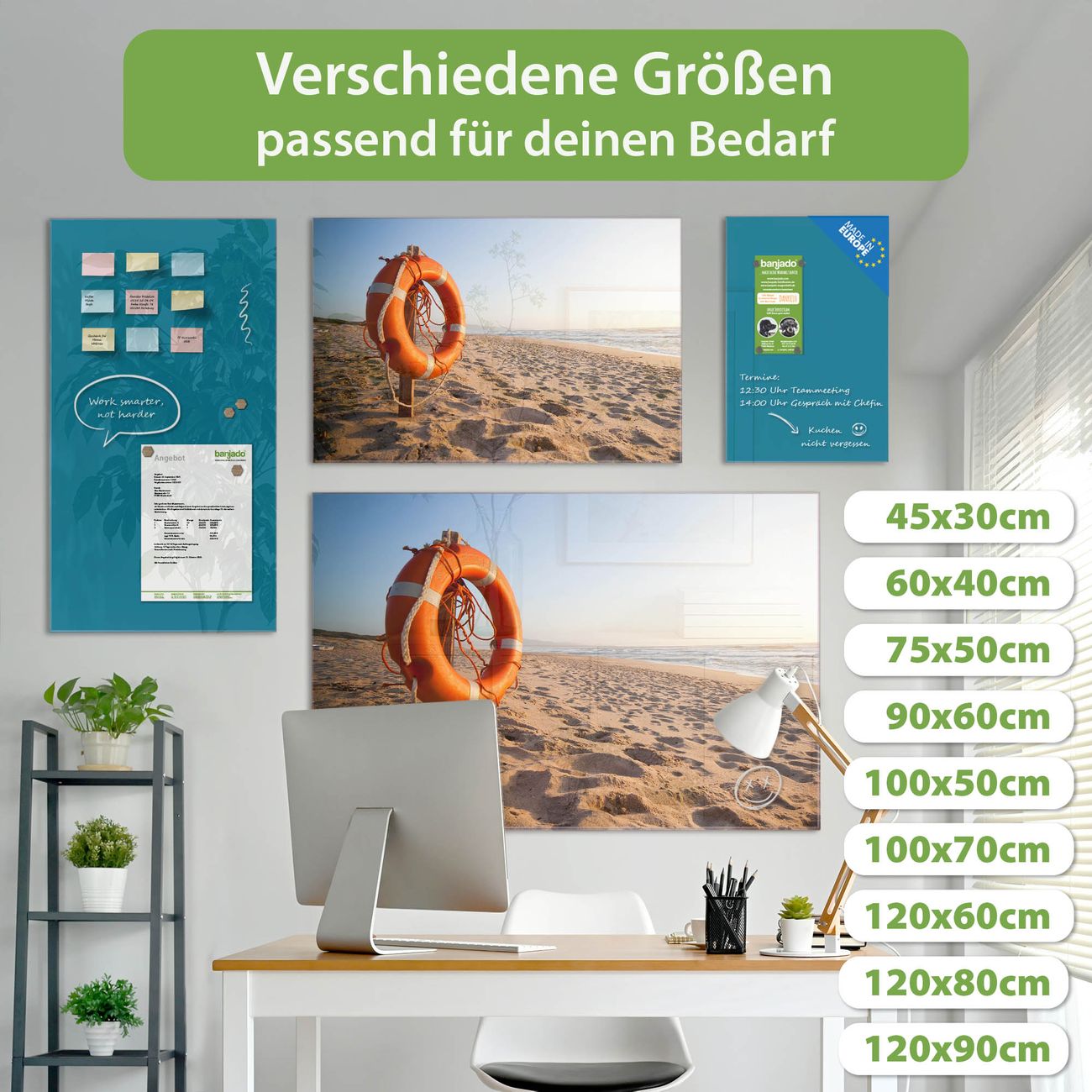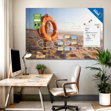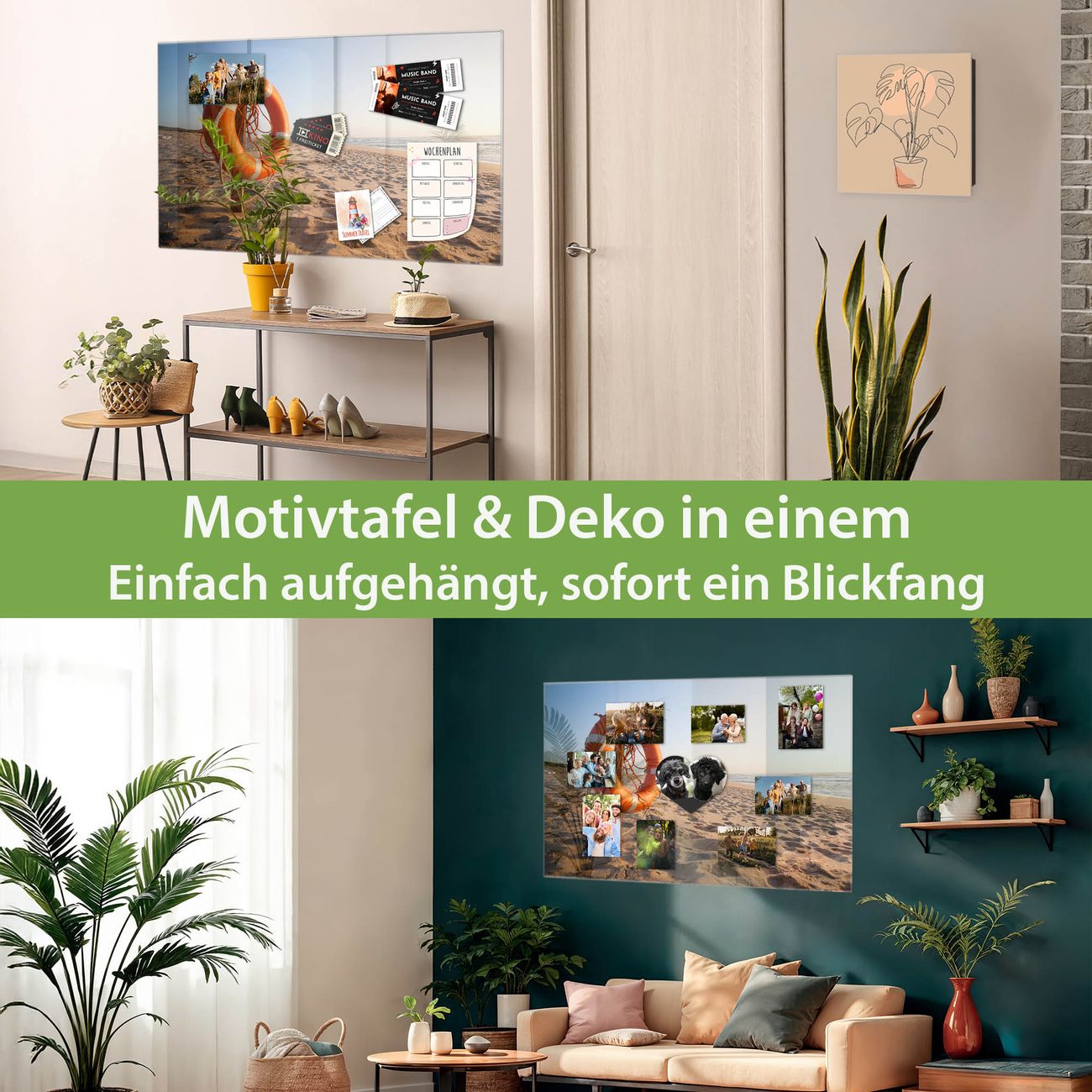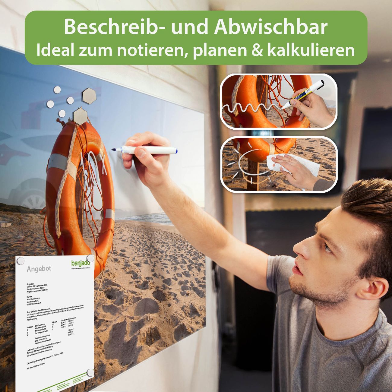 Die banjado Glas Magnettafel mit dem Motiv Motiv Morgens Am Strand verbindet Funktionalität mit Stil. Sie ersetzt das Zettelchaos durch klare Strukturen und bringt dabei eine warme, natürliche Atmosphäre in Ihr Zuhause. Ob im Büro, in der Küche oder im Eingangsbereich - dieses Design-Board zieht Blicke an und sorgt für Ordnung mit Charakter.