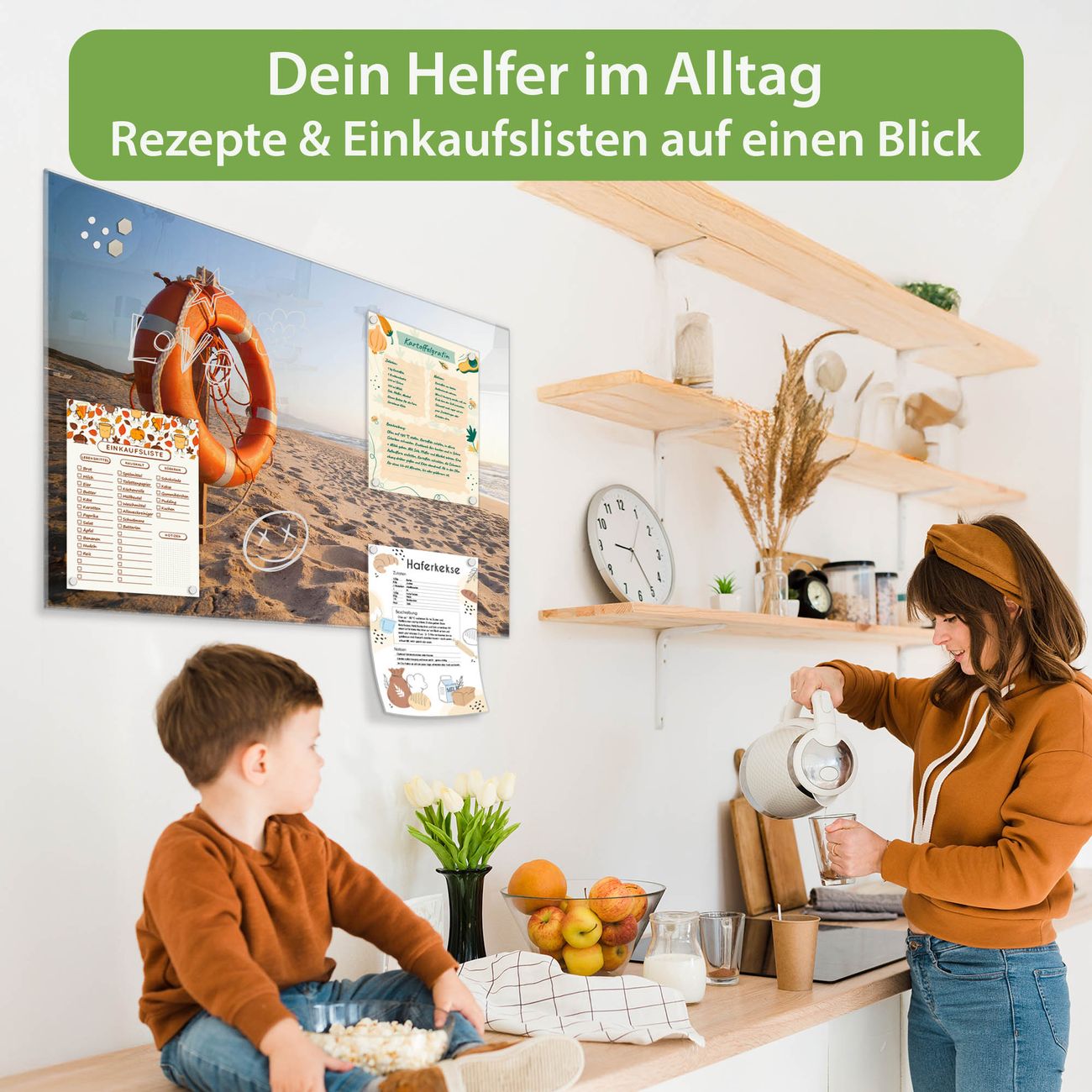 Ein Stück Design, das Ihren Alltag organisiert. Schreiben, heften, inspirieren - alles an einem Ort. Qualität, die man spürt. Montage leicht gemacht. Handwerk mit Herz - veredelt in Sachsen. Einzigartiges Design mit Motiv Motiv Morgens Am Strand Beschreibbare Glasoberfläche, leicht zu reinigen Starke Magnetkraft durch Stahlrückwand Inklusive 4 Neodym-Magneten Flexible Montageoptionen Handveredelt in Sachsen - Qualität, die bleibt