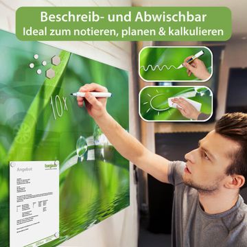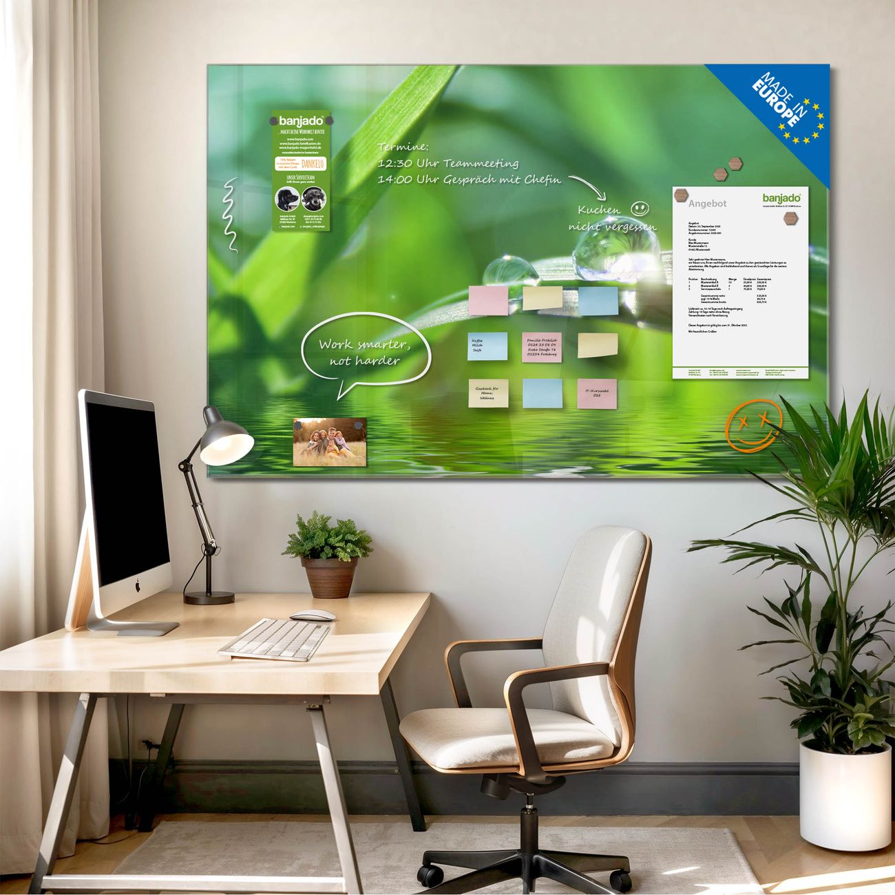 Die banjado Glas Magnettafel mit dem Motiv Motiv Morgentau verbindet Funktionalität mit Stil. Sie ersetzt das Zettelchaos durch klare Strukturen und bringt dabei eine warme, natürliche Atmosphäre in Ihr Zuhause. Ob im Büro, in der Küche oder im Eingangsbereich - dieses Design-Board zieht Blicke an und sorgt für Ordnung mit Charakter.