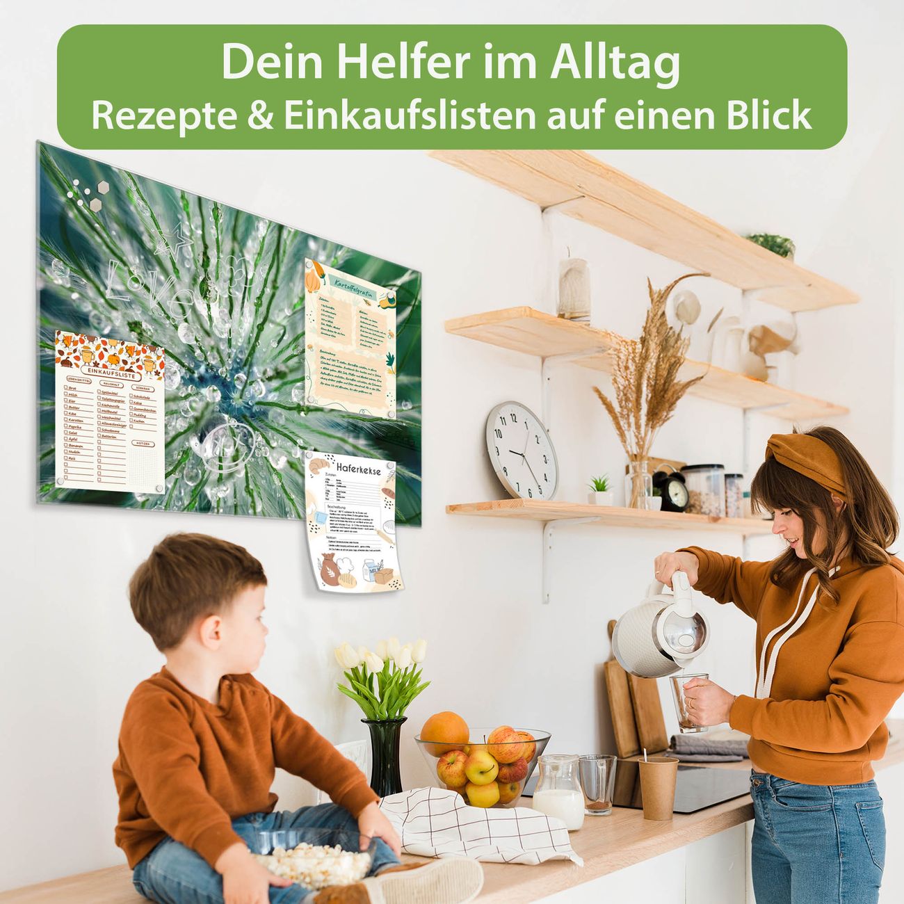 Auf der glatten Glasoberfläche lassen sich Termine, Rezepte oder Notizen ganz einfach mit Kreidestiften festhalten und rückstandslos entfernen. Starke Neodym-Magnete halten Ihre wichtigsten Erinnerungen sicher an Ort und Stelle. So entsteht Ihre ganz persönliche Ideenwand - jeden Tag neu.