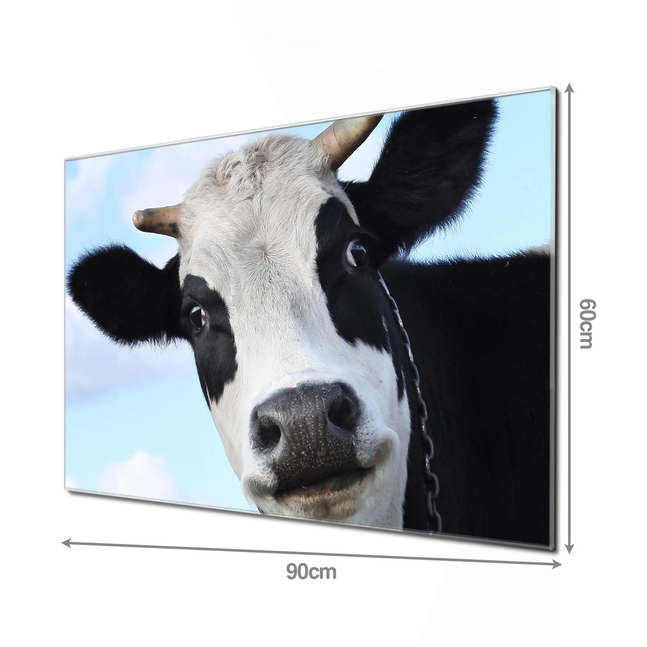 Material: 4mm Sicherheitsglas mit Metallrückwand Eigenschaften: beschreibbar, magnetisch, kratzfest Maße: 90x60x0,6cm, 8,10kg schwer Motiv Nummer 10104 Muh Zubehör: inklusive 4 Neodym-Magnete