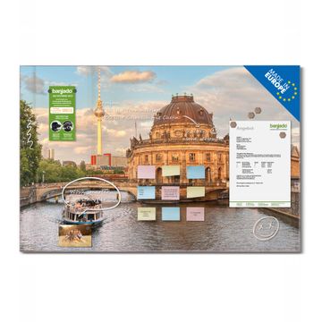 Material: 4mm Sicherheitsglas mit Metallrückwand Eigenschaften: beschreibbar, magnetisch, kratzfest Maße: 120x80x0,6cm, 14,40kg schwer Motiv Nummer 12403 Museumsinsel Zubehör: inklusive 4 Neodym-Magnete