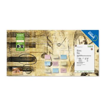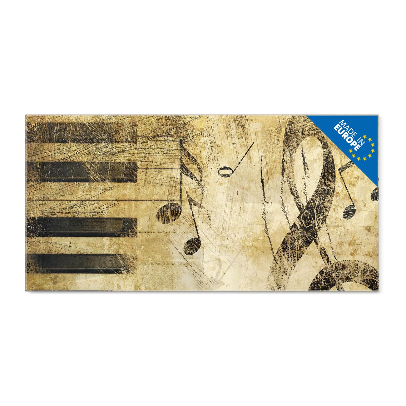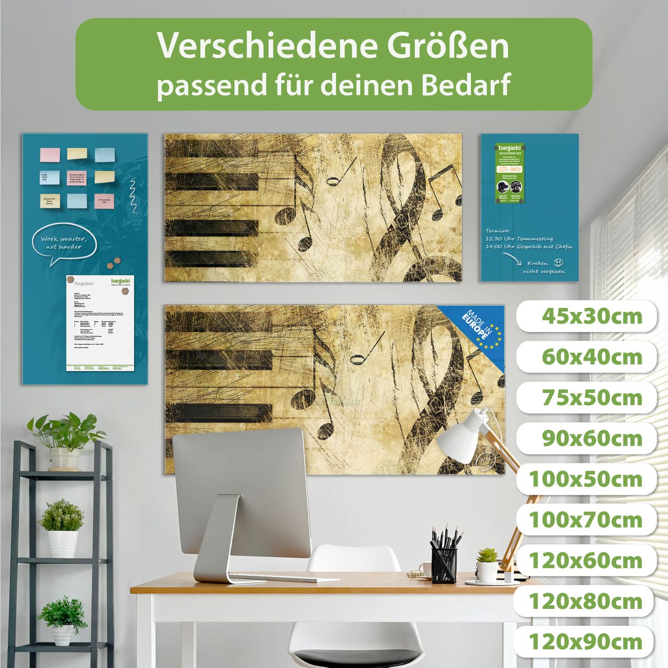 Material: 4mm Sicherheitsglas mit Metallrückwand Eigenschaften: beschreibbar, magnetisch, kratzfest Maße: 110x55x0,6cm, 9,08kg schwer Motiv Nummer 10160 Music Zubehör: inklusive 4 Neodym-Magnete