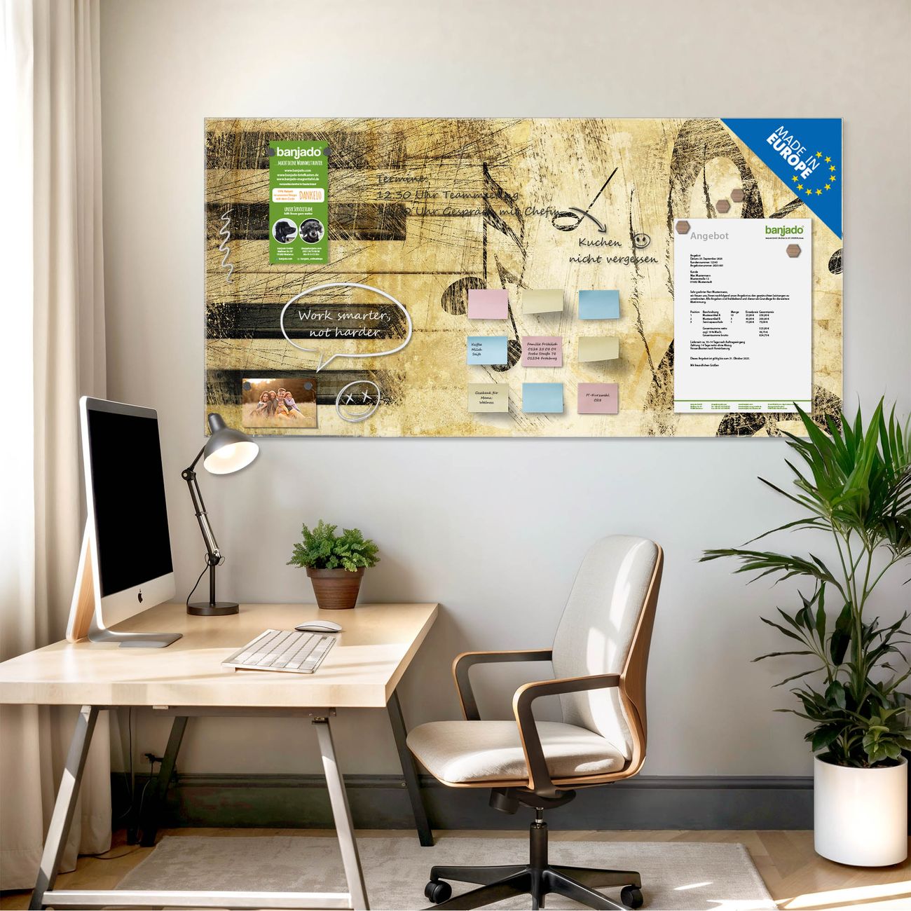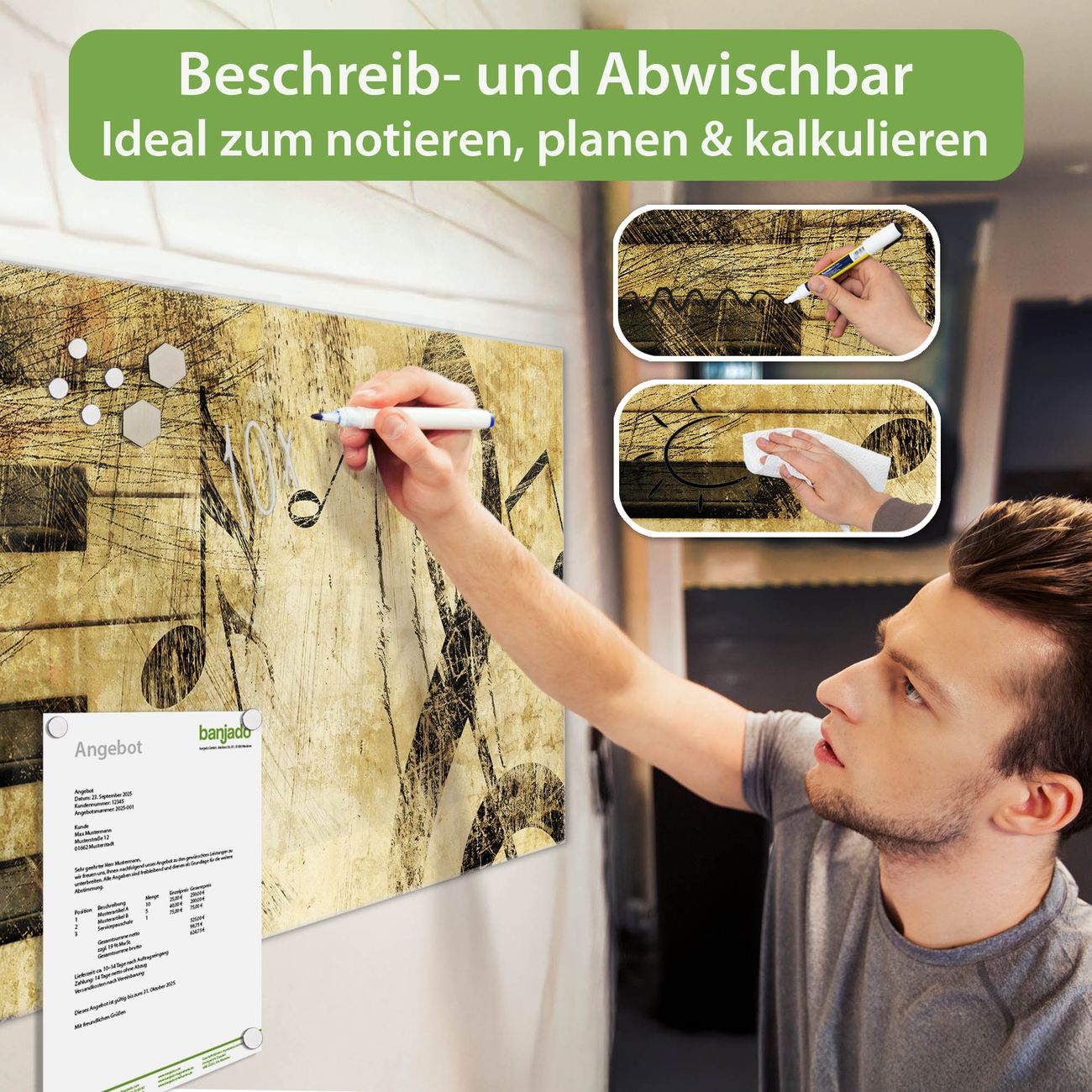 Die banjado Glas Magnettafel mit dem Motiv Motiv Music verbindet Funktionalität mit Stil. Sie ersetzt das Zettelchaos durch klare Strukturen und bringt dabei eine warme, natürliche Atmosphäre in Ihr Zuhause. Ob im Büro, in der Küche oder im Eingangsbereich - dieses Design-Board zieht Blicke an und sorgt für Ordnung mit Charakter.