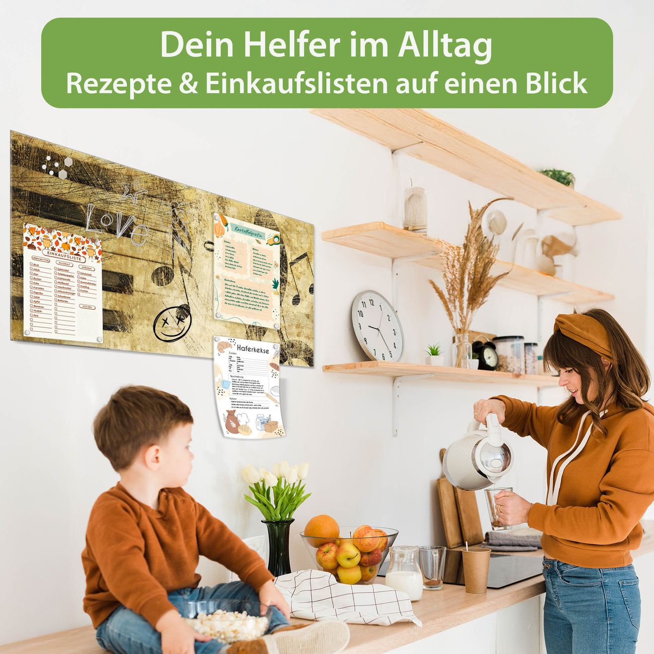 Ein Stück Design, das Ihren Alltag organisiert. Schreiben, heften, inspirieren - alles an einem Ort. Qualität, die man spürt. Montage leicht gemacht. Handwerk mit Herz - veredelt in Sachsen. Einzigartiges Design mit Motiv Motiv Music Beschreibbare Glasoberfläche, leicht zu reinigen Starke Magnetkraft durch Stahlrückwand Inklusive 4 Neodym-Magneten Flexible Montageoptionen Handveredelt in Sachsen - Qualität, die bleibt