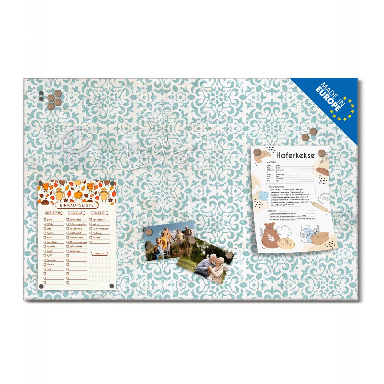 Ein Stück Design, das Ihren Alltag organisiert. Schreiben, heften, inspirieren - alles an einem Ort. Qualität, die man spürt. Montage leicht gemacht. Handwerk mit Herz - veredelt in Sachsen. Einzigartiges Design mit Motiv Motiv Muster Getupft Blau Beschreibbare Glasoberfläche, leicht zu reinigen Starke Magnetkraft durch Stahlrückwand Inklusive 4 Neodym-Magneten Flexible Montageoptionen Handveredelt in Sachsen - Qualität, die bleibt