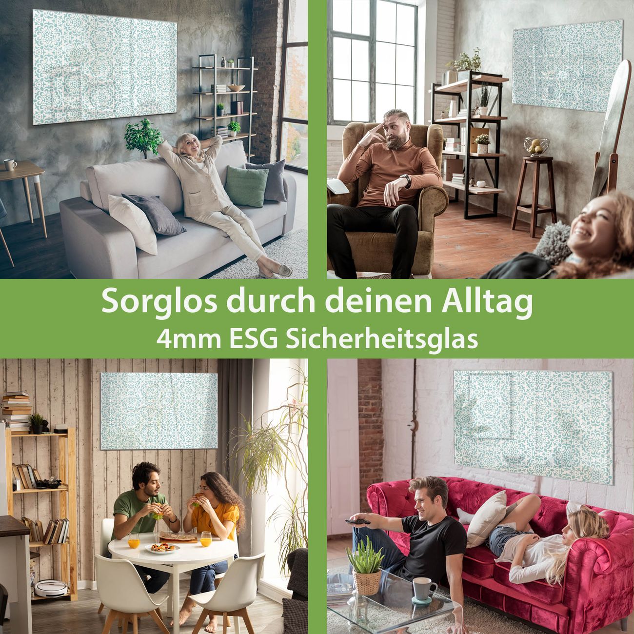 Material: 4mm Sicherheitsglas mit Metallrückwand Eigenschaften: beschreibbar, magnetisch, kratzfest Maße: 75x50x0,6cm, 5,63kg schwer Motiv Nummer 10947 Muster Getupft Blau Zubehör: inklusive 4 Neodym-Magnete