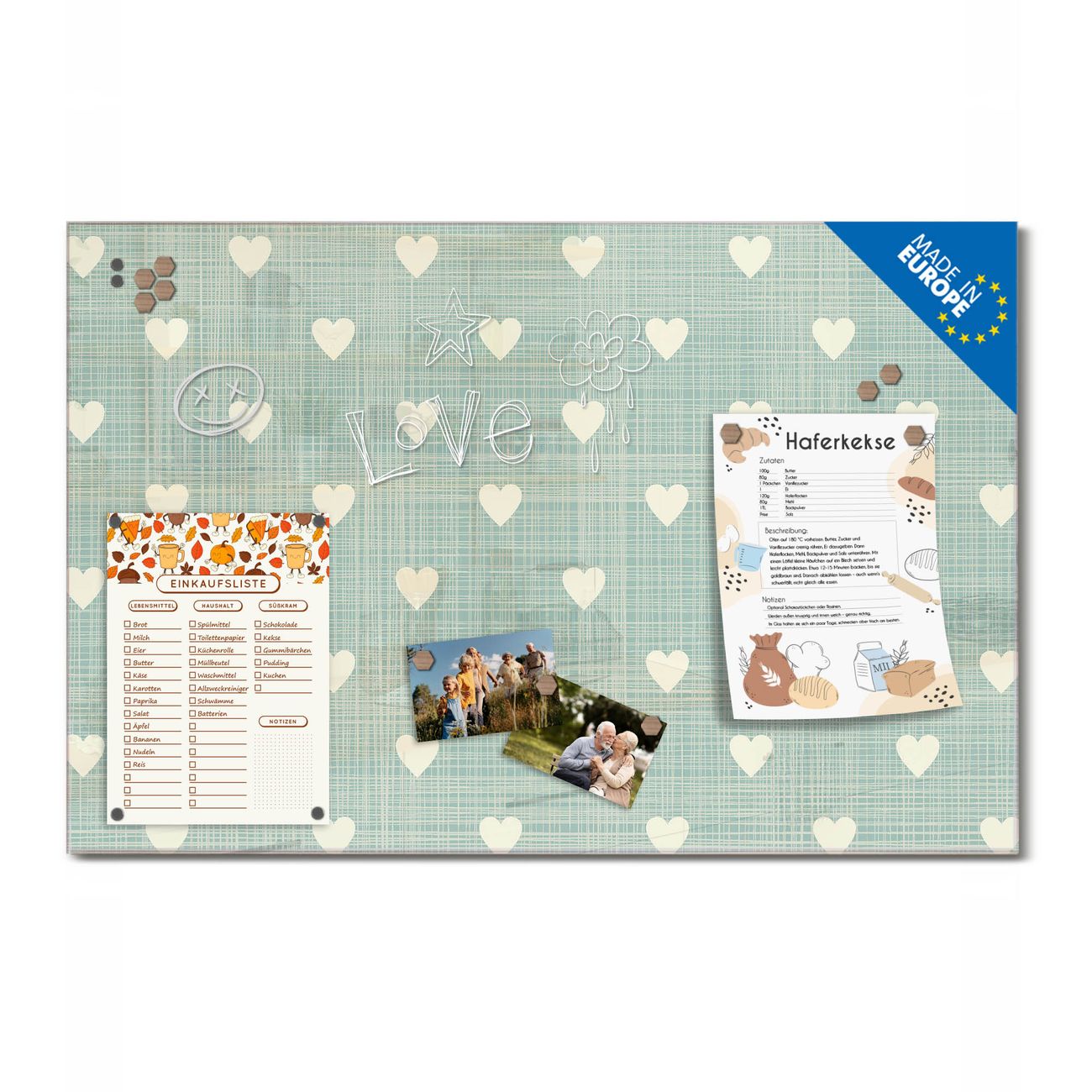 Glas Magnettafel im Querformat Motiv Muster Herzen