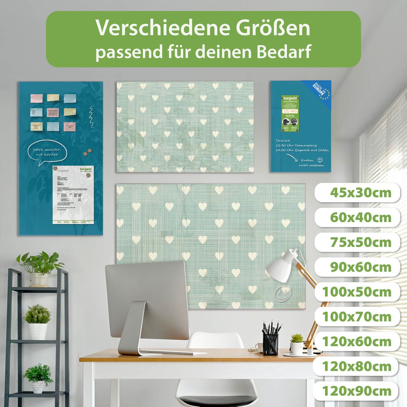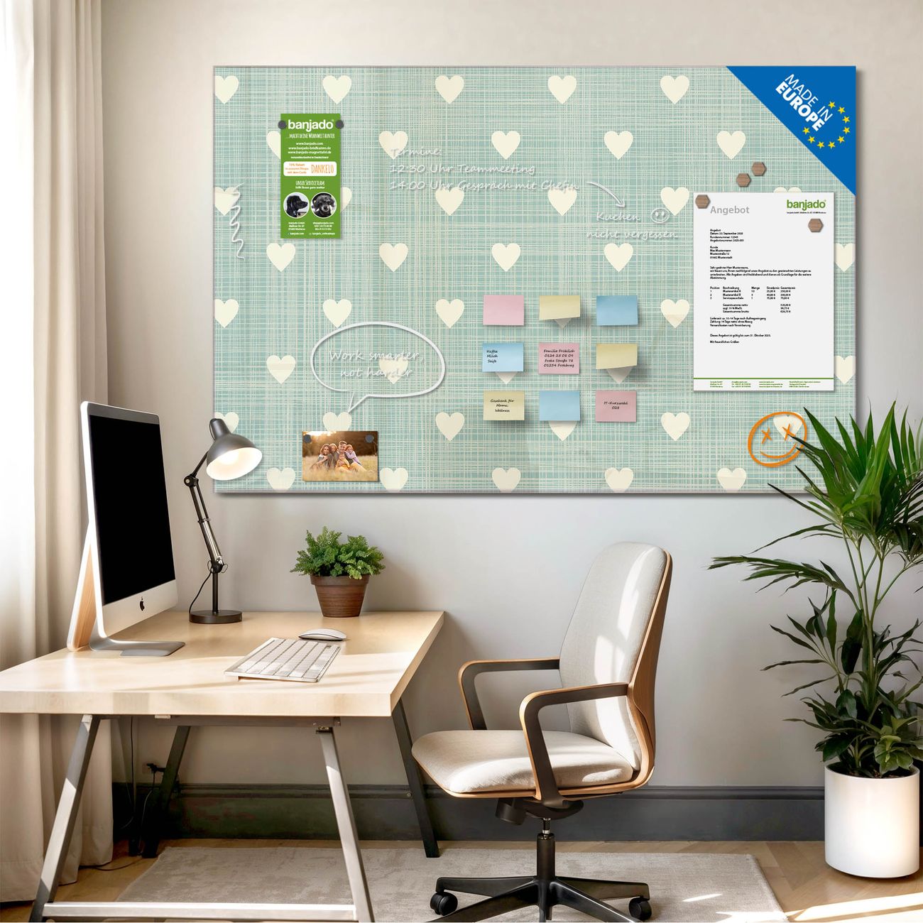 Die banjado Glas Magnettafel mit dem Motiv Motiv Muster Herzen verbindet Funktionalität mit Stil. Sie ersetzt das Zettelchaos durch klare Strukturen und bringt dabei eine warme, natürliche Atmosphäre in Ihr Zuhause. Ob im Büro, in der Küche oder im Eingangsbereich - dieses Design-Board zieht Blicke an und sorgt für Ordnung mit Charakter.