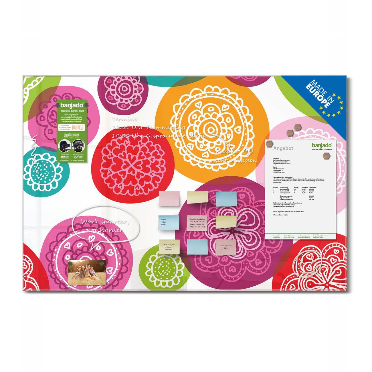 Die banjado Glas Magnettafel mit dem Motiv Motiv Naive Blüten verbindet Funktionalität mit Stil. Sie ersetzt das Zettelchaos durch klare Strukturen und bringt dabei eine warme, natürliche Atmosphäre in Ihr Zuhause. Ob im Büro, in der Küche oder im Eingangsbereich - dieses Design-Board zieht Blicke an und sorgt für Ordnung mit Charakter.