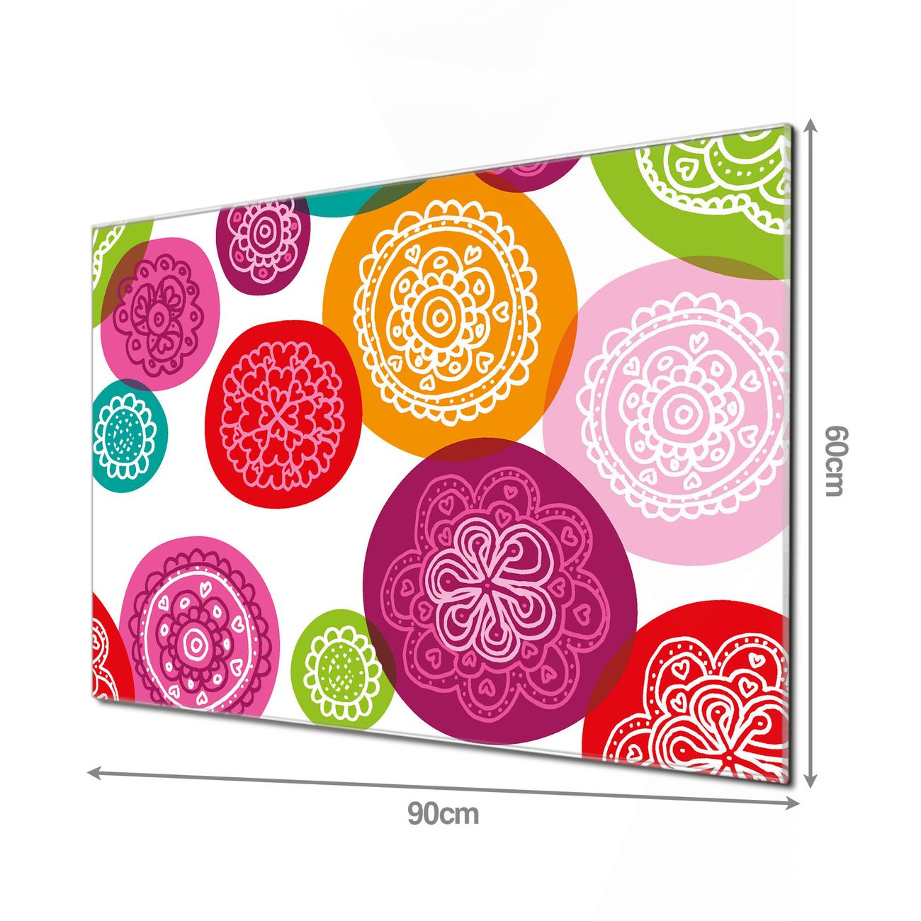 Material  4mm Sicherheitsglas mit Metallrückwand Eigenschaften  beschreibbar, magnetisch, kratzfest Maße  90x60x0,6cm, 8,10kg schwer Motiv  Nummer 11419 Naive Blüten Zubehör  inklusive 4 Neodym-Magnete