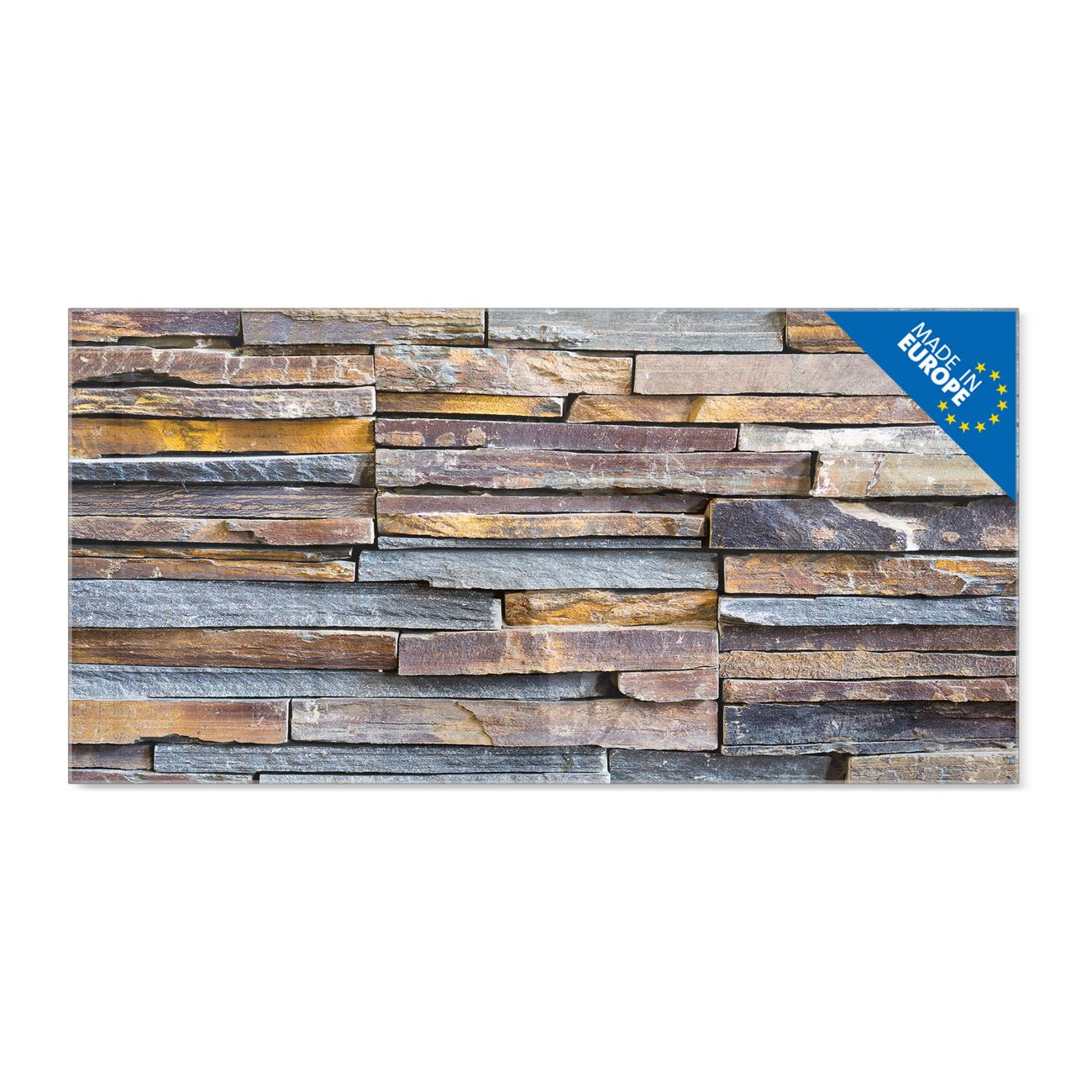 Material: 4mm Sicherheitsglas mit Metallrückwand Eigenschaften: beschreibbar, magnetisch, kratzfest Maße: 120x60x0,6cm, 10,80kg schwer Motiv Nummer 11233 Naturstein Zubehör: inklusive 4 Neodym-Magnete
