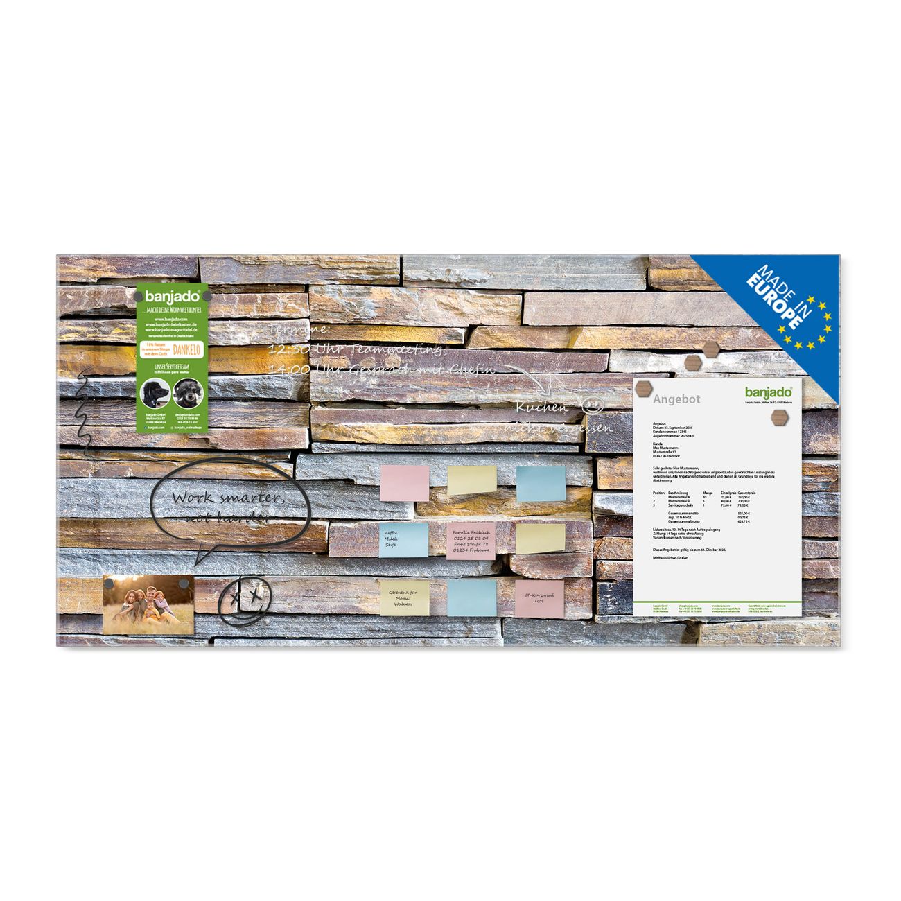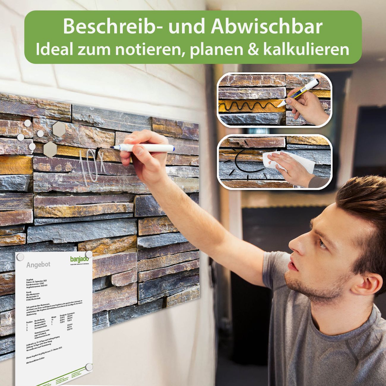 Die banjado Glas Magnettafel mit dem Motiv Motiv Naturstein verbindet Funktionalität mit Stil. Sie ersetzt das Zettelchaos durch klare Strukturen und bringt dabei eine warme, natürliche Atmosphäre in Ihr Zuhause. Ob im Büro, in der Küche oder im Eingangsbereich - dieses Design-Board zieht Blicke an und sorgt für Ordnung mit Charakter.