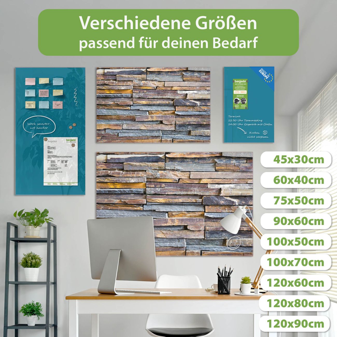 Jede Glas Magnettafel wird in unserer Werkstatt von Hand gefertigt und sorgfältig geprüft. So erhalten Sie ein echtes Qualitätsprodukt, das Funktion und Ästhetik perfekt vereint.?? Warum banjado?