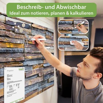 Die banjado Glas Magnettafel mit dem Motiv Motiv Naturstein verbindet Funktionalität mit Stil. Sie ersetzt das Zettelchaos durch klare Strukturen und bringt dabei eine warme, natürliche Atmosphäre in Ihr Zuhause. Ob im Büro, in der Küche oder im Eingangsbereich - dieses Design-Board zieht Blicke an und sorgt für Ordnung mit Charakter.