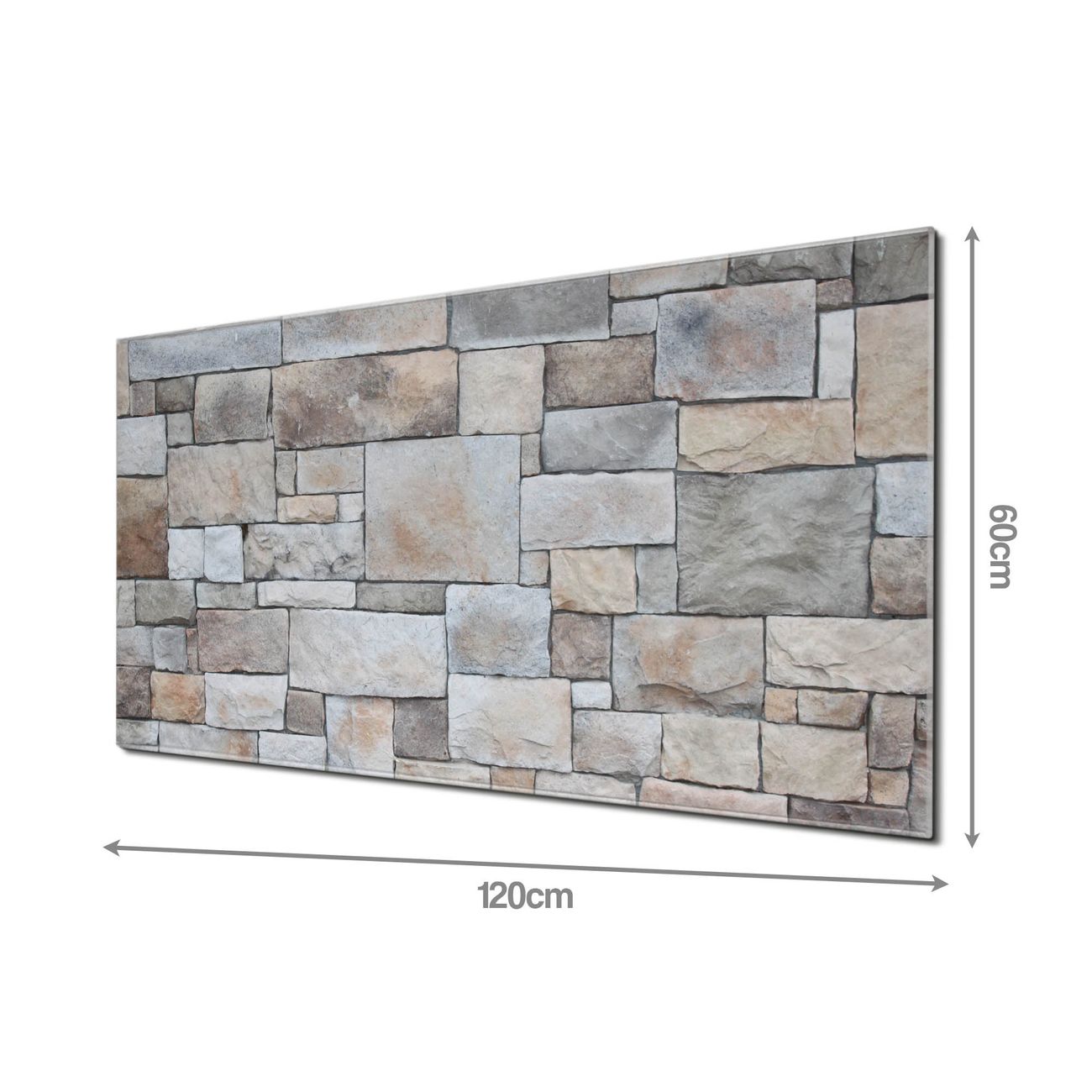 Material: 4mm Sicherheitsglas mit Metallrückwand Eigenschaften: beschreibbar, magnetisch, kratzfest Maße: 120x60x0,6cm, 10,80kg schwer Motiv Nummer 12207 Natursteinmauer Zubehör: inklusive 4 Neodym-Magnete