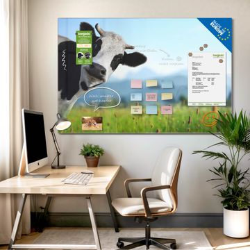 Material: 4mm Sicherheitsglas mit Metallrückwand Eigenschaften: beschreibbar, magnetisch, kratzfest Maße: 45x30x0,6cm, 2,03kg schwer Motiv Nummer 12387 Neugierig Zubehör: inklusive 4 Neodym-Magnete
