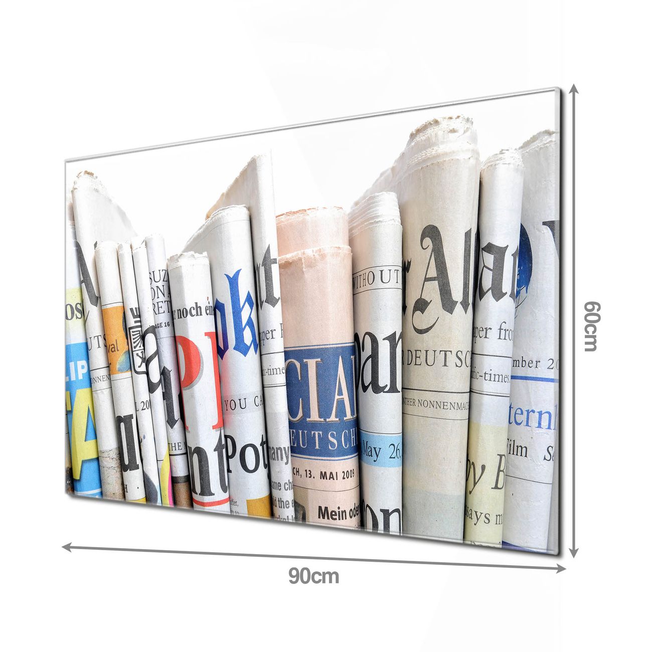 Material: 4mm Sicherheitsglas mit Metallrückwand Eigenschaften: beschreibbar, magnetisch, kratzfest Maße: 90x60x0,6cm, 8,10kg schwer Motiv Nummer 12496 Presse Zubehör: inklusive 4 Neodym-Magnete