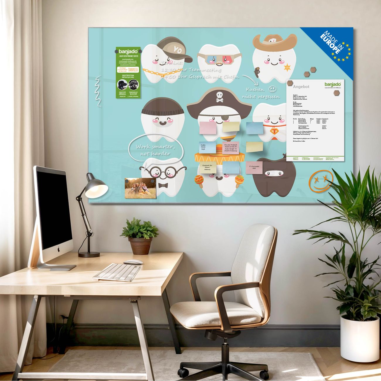 Glas Magnettafel im Querformat Motiv Neun Zähne