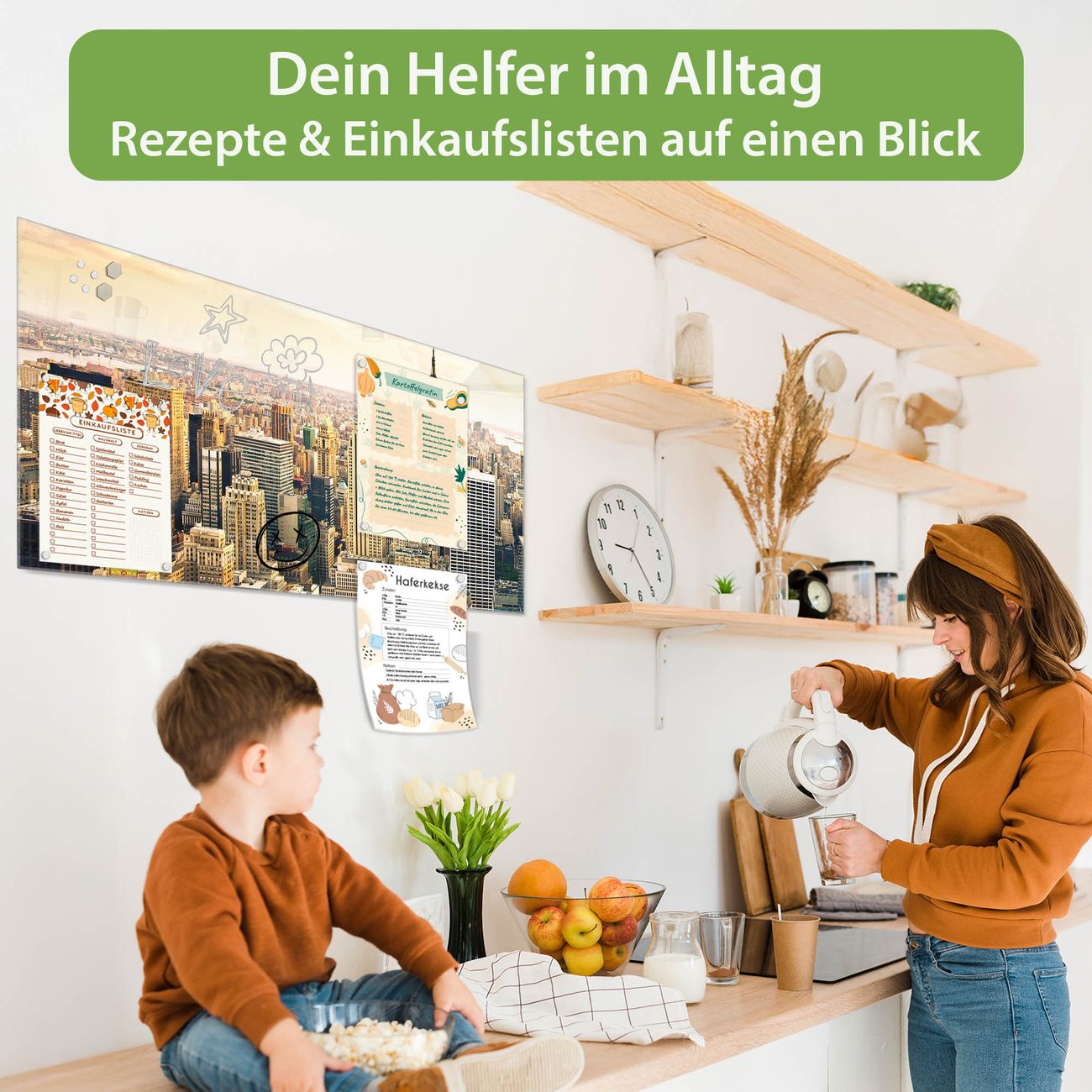 Ein Stück Design, das Ihren Alltag organisiert. Schreiben, heften, inspirieren - alles an einem Ort. Qualität, die man spürt. Montage leicht gemacht. Handwerk mit Herz - veredelt in Sachsen. Einzigartiges Design mit Motiv Motiv New York City Beschreibbare Glasoberfläche, leicht zu reinigen Starke Magnetkraft durch Stahlrückwand Inklusive 4 Neodym-Magneten Flexible Montageoptionen Handveredelt in Sachsen - Qualität, die bleibt