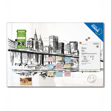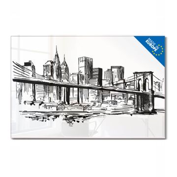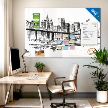 Glas Magnettafel im Querformat Motiv New York Skizze
