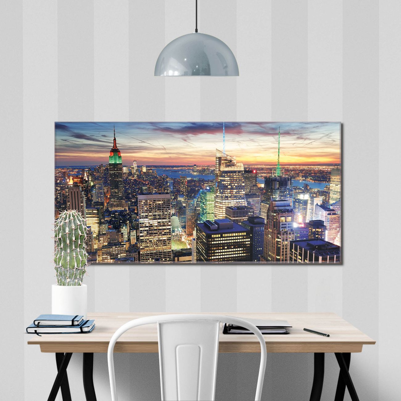 Glas Magnettafel im Querformat Motiv New York Sunset