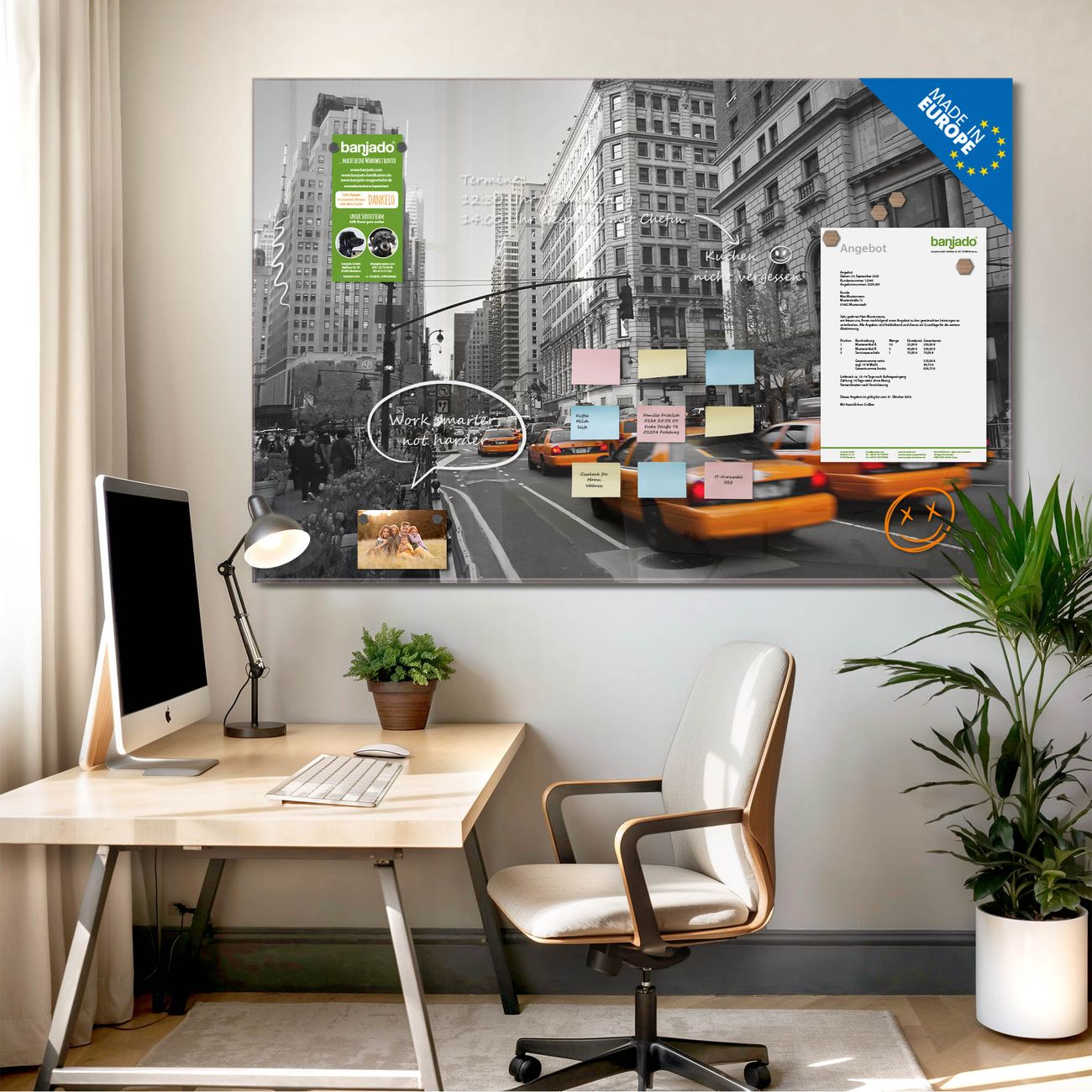 Jede Glas Magnettafel wird in unserer Werkstatt von Hand gefertigt und sorgfältig geprüft. So erhalten Sie ein echtes Qualitätsprodukt, das Funktion und Ästhetik perfekt vereint.?? Warum banjado?