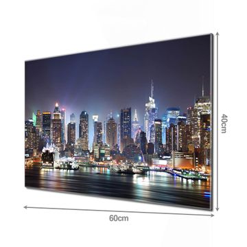 Material: 4mm Sicherheitsglas mit Metallrückwand Eigenschaften: beschreibbar, magnetisch, kratzfest Maße: 60x40x0,6cm, 3,6kg schwer Motiv Nummer 10019 New York Zubehör: inklusive 4 Neodym-Magnete