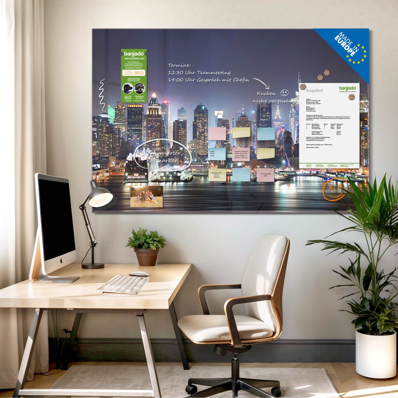 Die banjado Glas Magnettafel mit dem Motiv Motiv New York verbindet Funktionalität mit Stil. Sie ersetzt das Zettelchaos durch klare Strukturen und bringt dabei eine warme, natürliche Atmosphäre in Ihr Zuhause. Ob im Büro, in der Küche oder im Eingangsbereich - dieses Design-Board zieht Blicke an und sorgt für Ordnung mit Charakter.