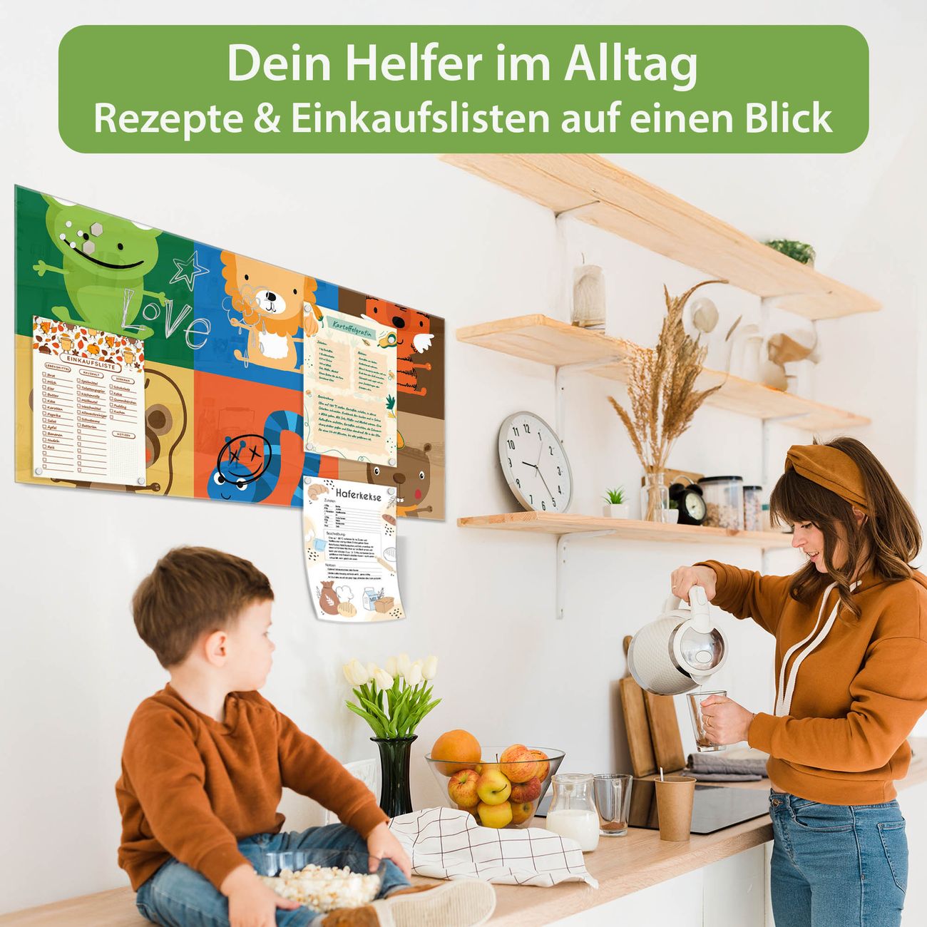 Auf der glatten Glasoberfläche lassen sich Termine, Rezepte oder Notizen ganz einfach mit Kreidestiften festhalten und rückstandslos entfernen. Starke Neodym-Magnete halten Ihre wichtigsten Erinnerungen sicher an Ort und Stelle. So entsteht Ihre ganz persönliche Ideenwand - jeden Tag neu.
