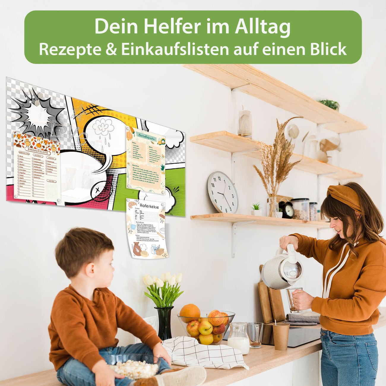 Auf der glatten Glasoberfläche lassen sich Termine, Rezepte oder Notizen ganz einfach mit Kreidestiften festhalten und rückstandslos entfernen. Starke Neodym-Magnete halten Ihre wichtigsten Erinnerungen sicher an Ort und Stelle. So entsteht Ihre ganz persönliche Ideenwand - jeden Tag neu.