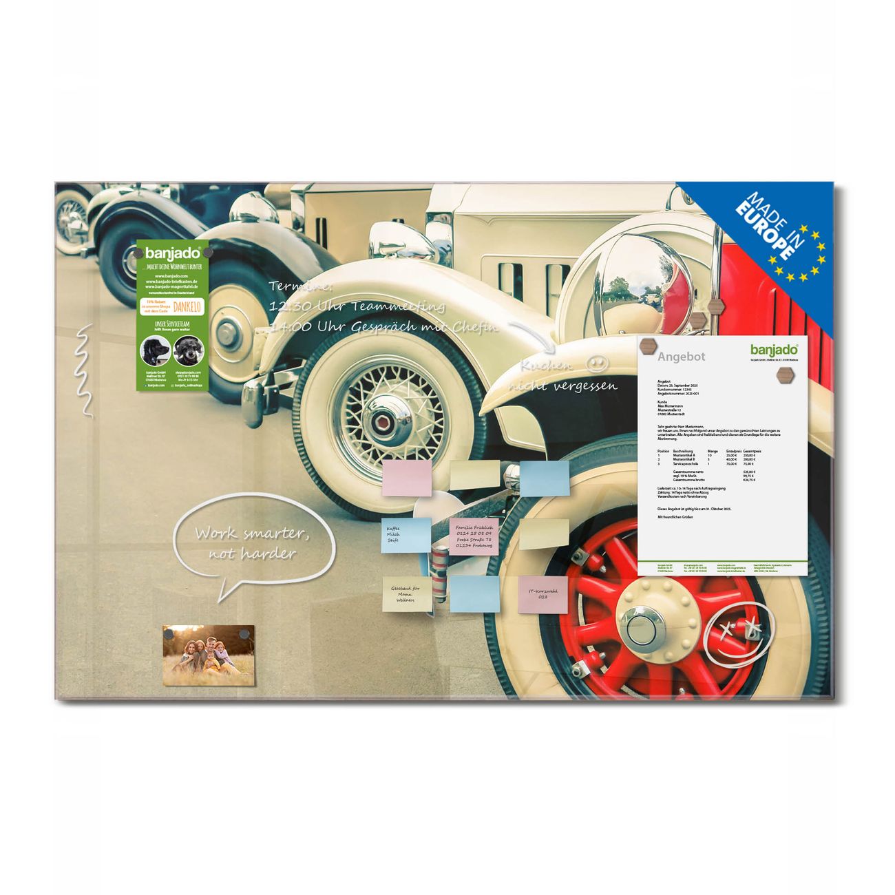 Glas Magnettafel im Querformat Motiv Oldtimer Räder