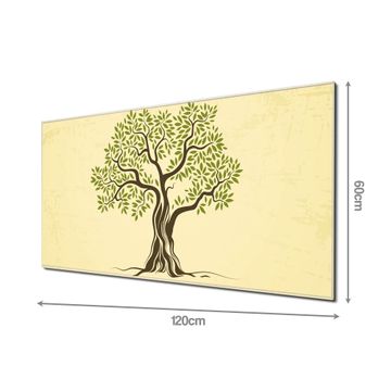 Material: 4mm Sicherheitsglas mit Metallrückwand Eigenschaften: beschreibbar, magnetisch, kratzfest Maße: 120x60x0,6cm, 10,80kg schwer Motiv Nummer 11129 Olivenbaum Zubehör: inklusive 4 Neodym-Magnete