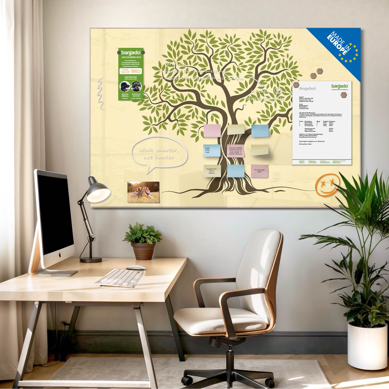 Die banjado Glas Magnettafel mit dem Motiv Motiv Olivenbaum verbindet Funktionalität mit Stil. Sie ersetzt das Zettelchaos durch klare Strukturen und bringt dabei eine warme, natürliche Atmosphäre in Ihr Zuhause. Ob im Büro, in der Küche oder im Eingangsbereich - dieses Design-Board zieht Blicke an und sorgt für Ordnung mit Charakter.