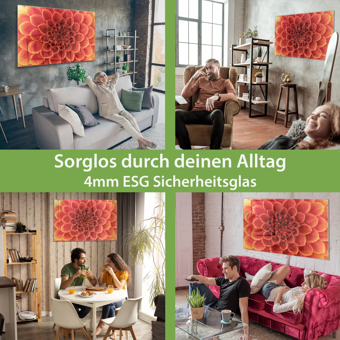 Material: 4mm Sicherheitsglas mit Metallrückwand Eigenschaften: beschreibbar, magnetisch, kratzfest Maße: 75x50x0,6cm, 5,63kg schwer Motiv Nummer 12538 Orange Chrysantheme Zubehör: inklusive 4 Neodym-Magnete
