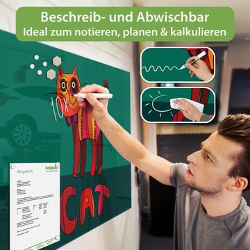 Das Magnetboard besteht aus gehärtetem Glas, die Rückwand aus einem magnetischen Stahlblech. Durch die superflache Bauweise haben Sie die Wahl aus einer Vielzahl von Befestigungsmöglichkeiten. Sie können die Magnettafel mit einem Montagekleber superflach an die Wand kleben oder Sie wählen eines unserer passenden Befestigungssets, welches eine optimale Montage garantiert. Die Magnetwand besteht aus zertifiziertem Sicherheitsglas. Durch die mitgelieferten 4 Neodym-Magnete ist Ihre Glas Magnettafel sofort einsatzbereit. Wichtige Notizen und Informationen können Sie einfach mit Kreidestiften auf die Glasmagnettafel schreiben und rückstandslos wieder entfernen.