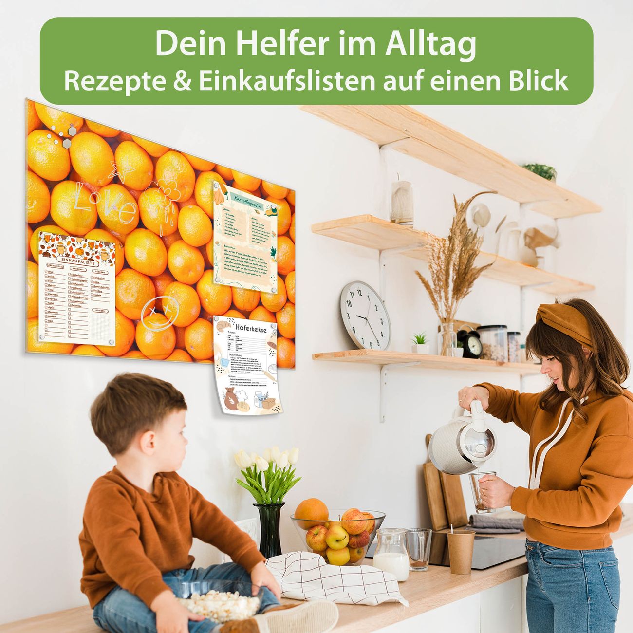 Ein Stück Design, das Ihren Alltag organisiert. Schreiben, heften, inspirieren - alles an einem Ort. Qualität, die man spürt. Montage leicht gemacht. Handwerk mit Herz - veredelt in Sachsen. Einzigartiges Design mit Motiv Motiv Orangen Beschreibbare Glasoberfläche, leicht zu reinigen Starke Magnetkraft durch Stahlrückwand Inklusive 4 Neodym-Magneten Flexible Montageoptionen Handveredelt in Sachsen - Qualität, die bleibt
