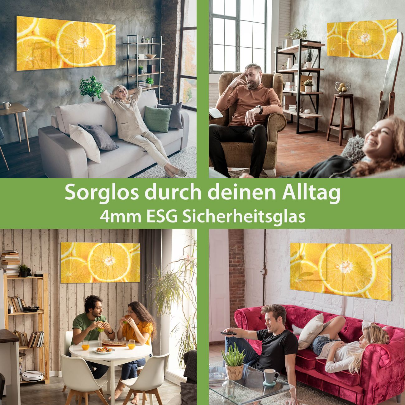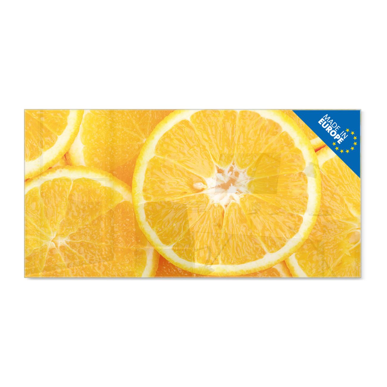 Material: 4mm Sicherheitsglas mit Metallrückwand Eigenschaften: beschreibbar, magnetisch, kratzfest Maße: 120x60x0,6cm, 10,80kg schwer Motiv Nummer 10468 Orangenscheiben Zubehör: inklusive 4 Neodym-Magnete