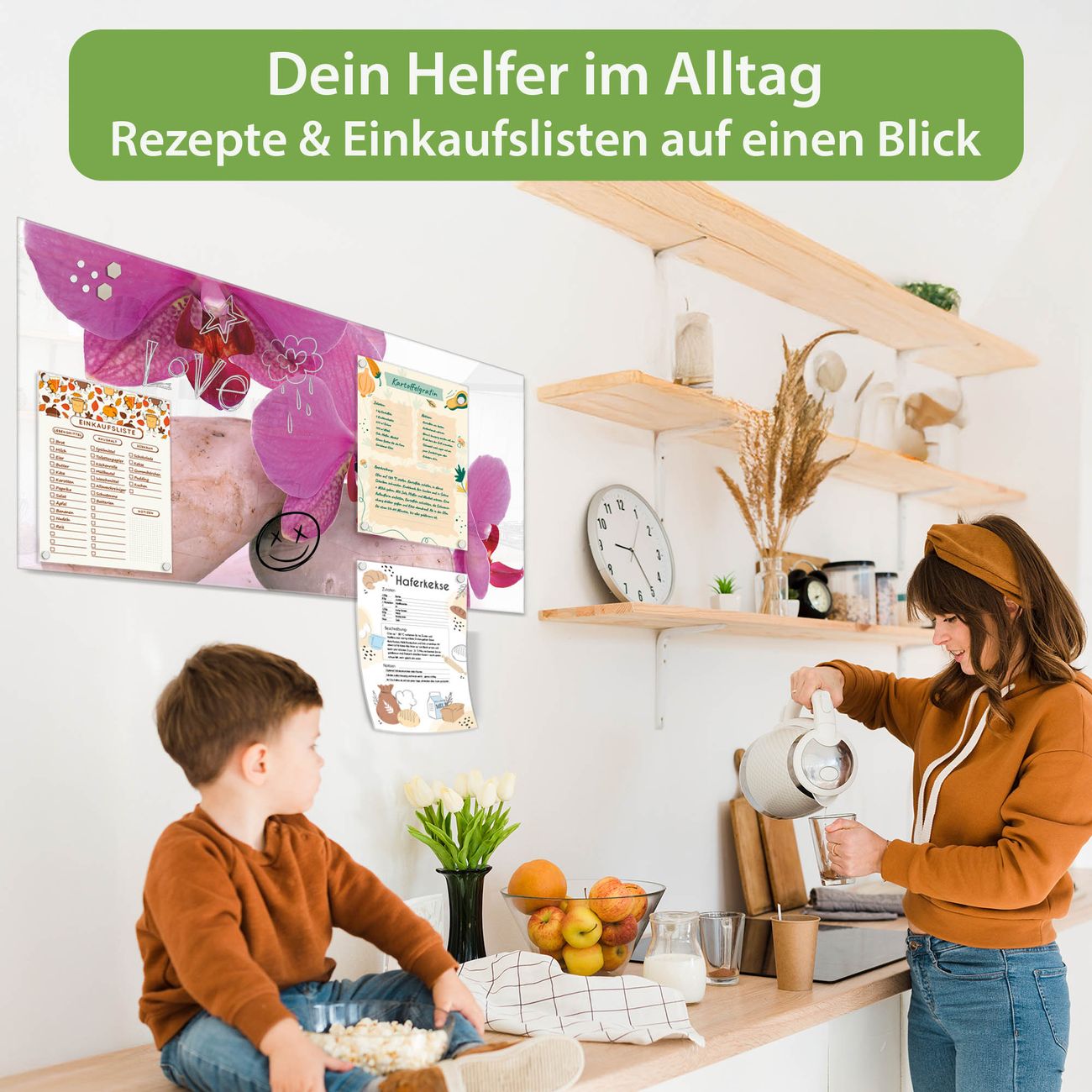 Ein Stück Design, das Ihren Alltag organisiert. Schreiben, heften, inspirieren - alles an einem Ort. Qualität, die man spürt. Montage leicht gemacht. Handwerk mit Herz - veredelt in Sachsen. Einzigartiges Design mit Motiv Motiv Orchidee Beschreibbare Glasoberfläche, leicht zu reinigen Starke Magnetkraft durch Stahlrückwand Inklusive 4 Neodym-Magneten Flexible Montageoptionen Handveredelt in Sachsen - Qualität, die bleibt