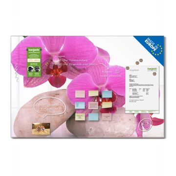 Material: 4mm Sicherheitsglas mit Metallrückwand Eigenschaften: beschreibbar, magnetisch, kratzfest Maße: 120x80x0,6cm, 14,40kg schwer Motiv Nummer 10086 Orchidee Zubehör: inklusive 4 Neodym-Magnete