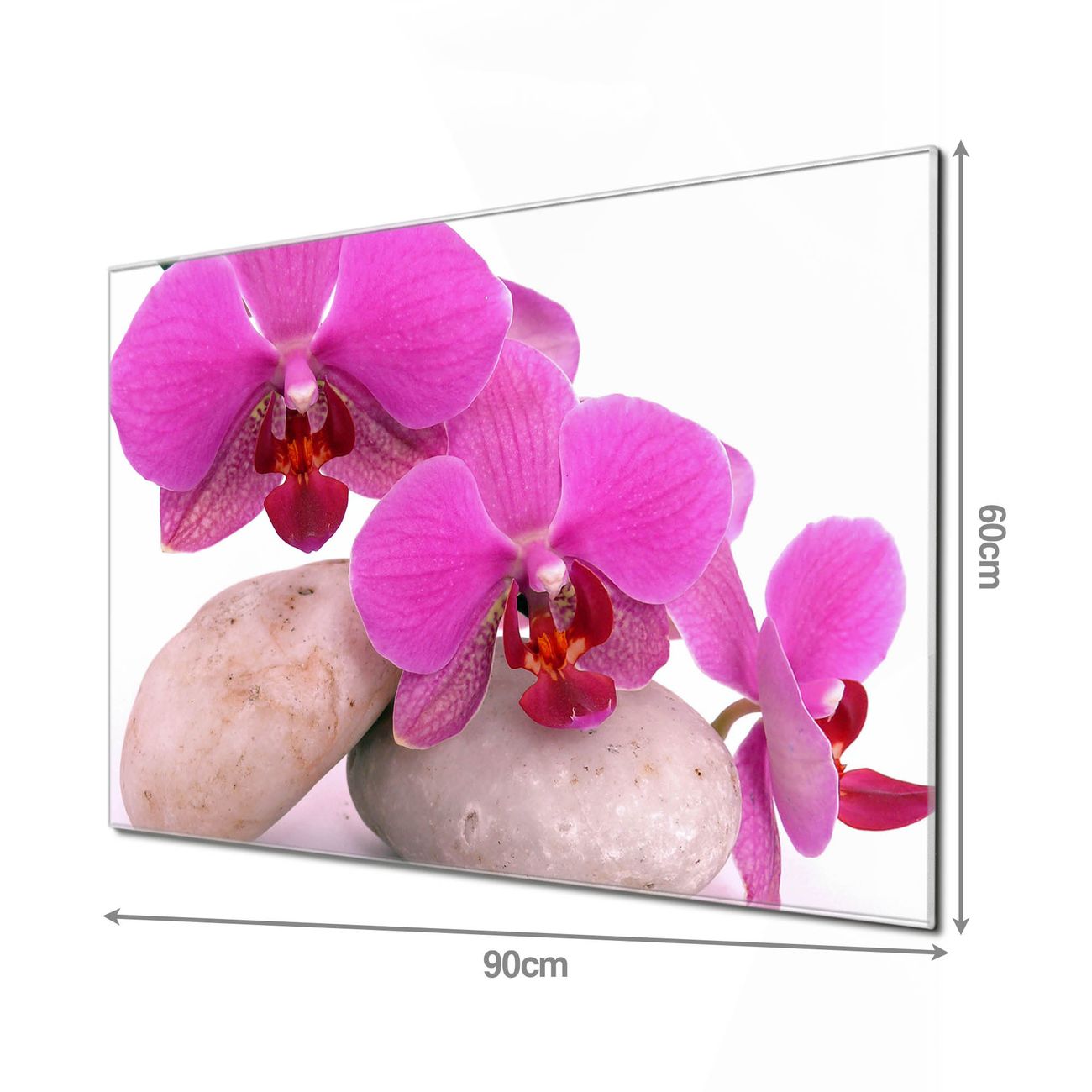 Material  4mm Sicherheitsglas mit Metallrückwand Eigenschaften  beschreibbar, magnetisch, kratzfest Maße  90x60x0,6cm, 8,10kg schwer Motiv  Nummer 10086 Orchidee Zubehör  inklusive 4 Neodym-Magnete