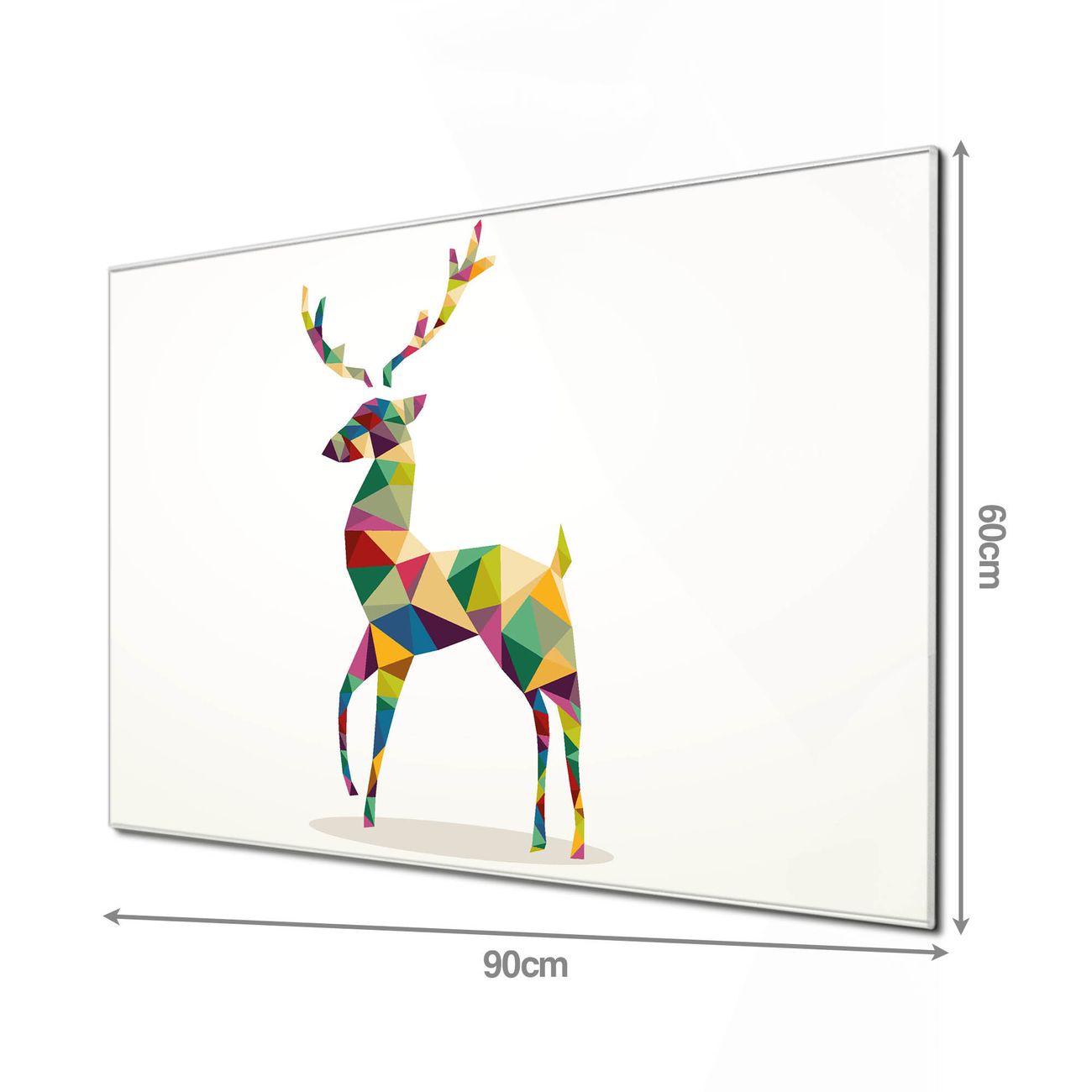 Material  4mm Sicherheitsglas mit Metallrückwand Eigenschaften  beschreibbar, magnetisch, kratzfest Maße  90x60x0,6cm, 8,10kg schwer Motiv  Nummer 12104 Origami Hirsch Zubehör  inklusive 4 Neodym-Magnete