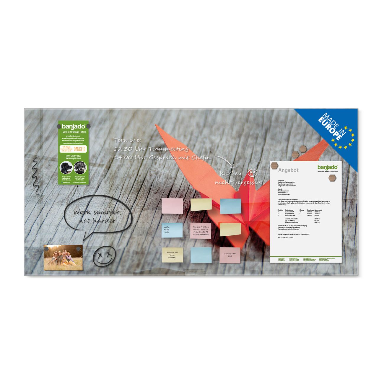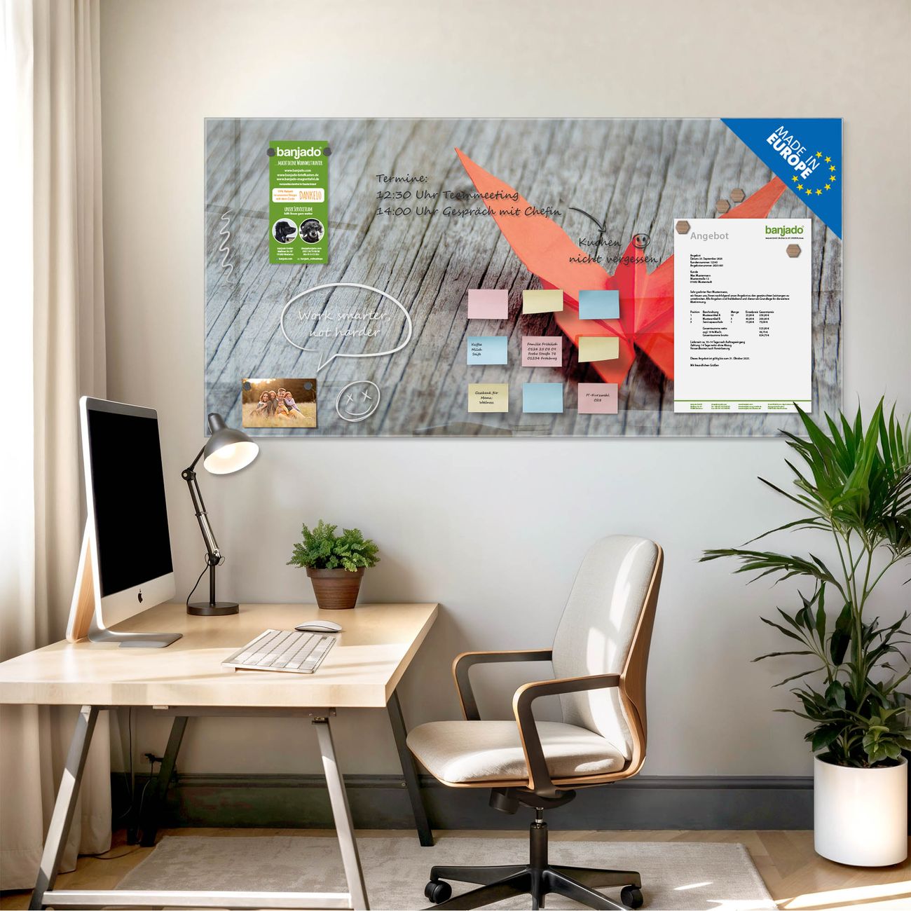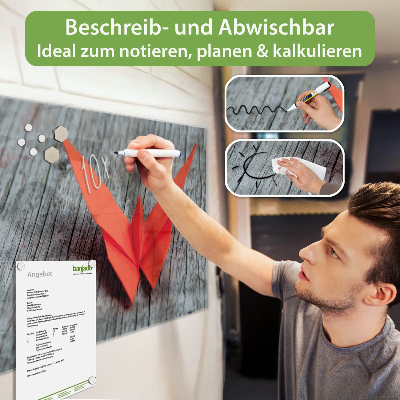 Jede Glas Magnettafel wird in unserer Werkstatt von Hand gefertigt und sorgfältig geprüft. So erhalten Sie ein echtes Qualitätsprodukt, das Funktion und Ästhetik perfekt vereint.?? Warum banjado?